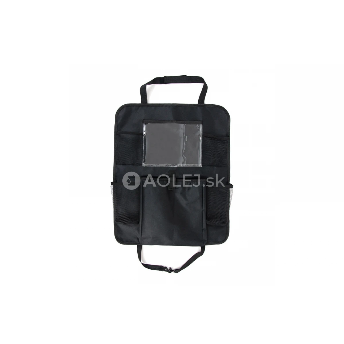 Organizér na predné sedadlo. Tento organizér slúži ako skvelý pomocník na organizáciu a uloženie rôznych drobností a udržanie poriadku vo vozidle. Organizér je určený k pripevneniu na zadnú stranu predného sedadla. Horná časť sa upevňuje o hlavovú opierku a spodná časť o sedadlo. Organizér má jedinečné usporiadanie, obsahuje niekoľko rôznych vreciek vhodných na nápoje, mapy, kozmetiku, menšie detské hračky a iné drobnosti. Upevnenie: Popruhy Farba: Čierna