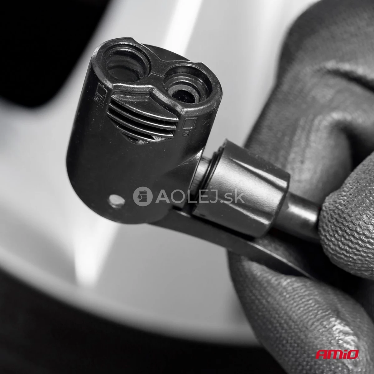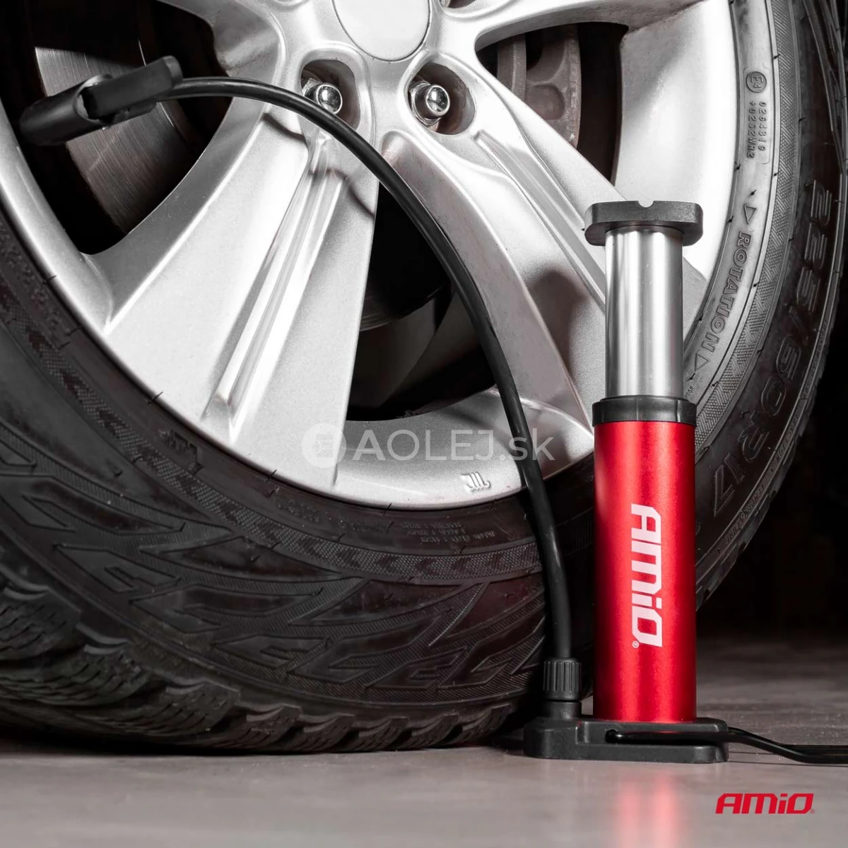 Robustná mini nožná pumpa s maximálnym tlakom 11 BAR / 160 PSI. Ľahko sa používa a vďaka svojej malej veľkosti sa ľahko prepravuje a skladuje. Má dvojitú univerzálnu hlavu pre ventily automobilov a bicyklov. Súčasťou súpravy je aj adaptér a ihla na nafúknutie matracov, lôpt, nafukovacích hračiek atď. - vyrobené z hliníka a odolného plastu - pevná základňa uľahčuje držanie čerpadla nohami - 40 cm dlhý kábel - výška čerpadla: 27 cm - rozmery po zložení: 17,5 x 9 x 9,5 cm