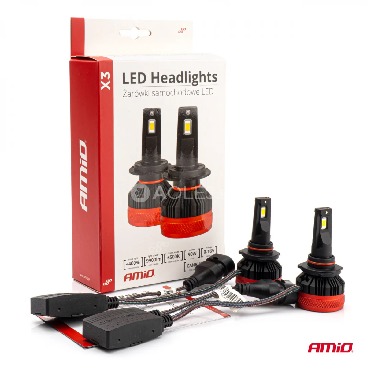 Séria AMiO X3 sa vyznačuje atraktívnou cenou v pomere k možnostiam týchto žiaroviek. Veľmi silné svetlo, perfektná línia, dlhá životnosť. Inteligentný, čipom riadený dvojstupňový aktívny chladiaci systém s chladičom, vysokou účinnosťou a bez efektu vyhorenia ako v prípade xenónových žiaroviek a tradičných halogénových žiaroviek. Odnímateľný adaptér s nastaviteľným výrezom pre všetky typy svetlometov. Vstavaný CANBUS, takže nedochádza k chybe vypálenej žiarovky. Inštalácia súpravy je rovnako jednoduchá ako výmena štandardnej halogénovej žiarovky. Žiadne časovo náročné úpravy existujúcej inštalácie a žiadne riskantné úpravy.