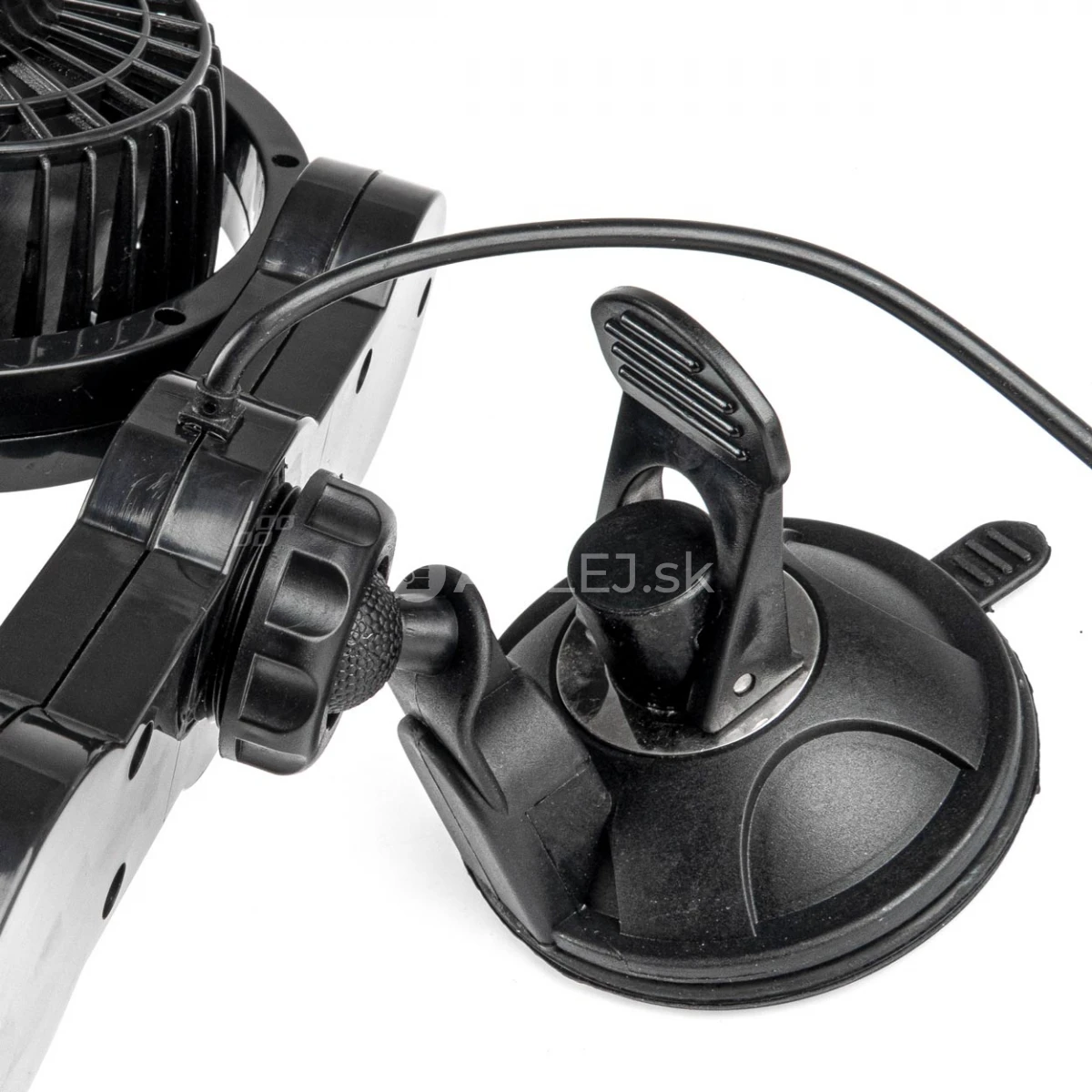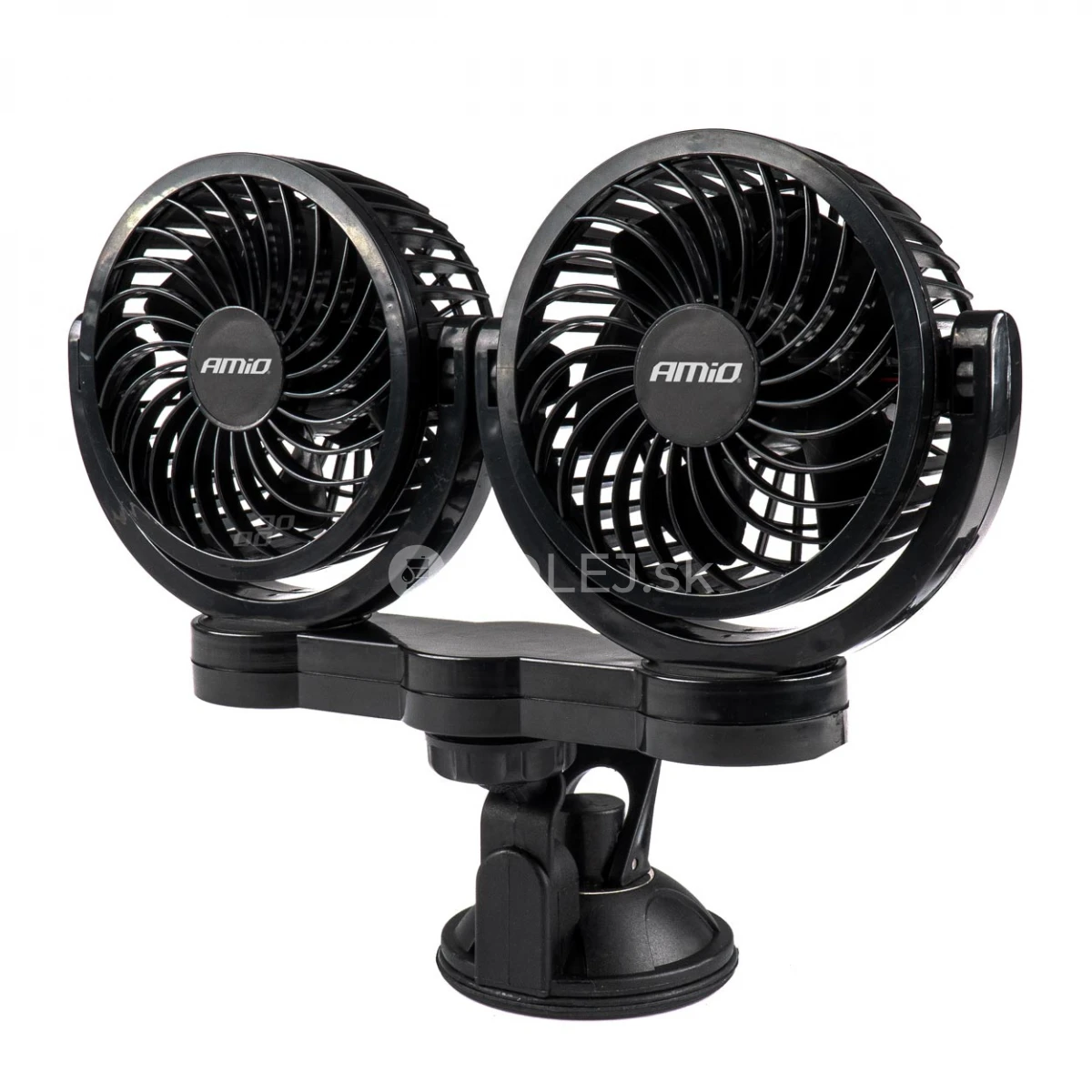 AMiO DVOJITÝ VENTILÁTOR DO AUTA NAPÁJANÝ ZO ZAPAĽOVAČA 24V MONTOVANÝ NA PRÍSAVKU