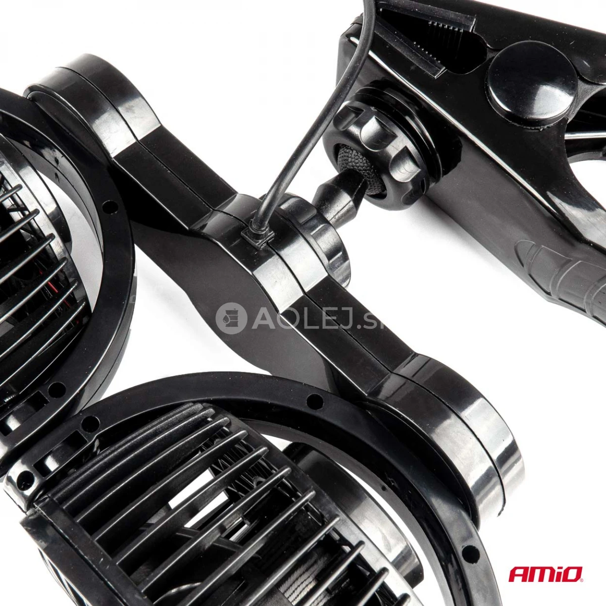 AMiO DVOJITÝ VENTILÁTOR DO AUTA NAPÁJANÝ ZO ZAPAĽOVAČA 12 V A MONTOVANÝ NA SPONU