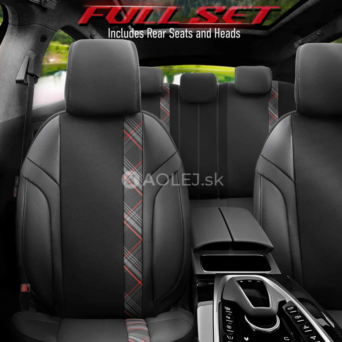 Poťahy nemajú výrezy pre pásy a zadné opierky hlavy z dôvodu ich použitia pre rôzne modely áut. Potrebné otvory si musíte urobiť sami po precíznom osadení a montáži.