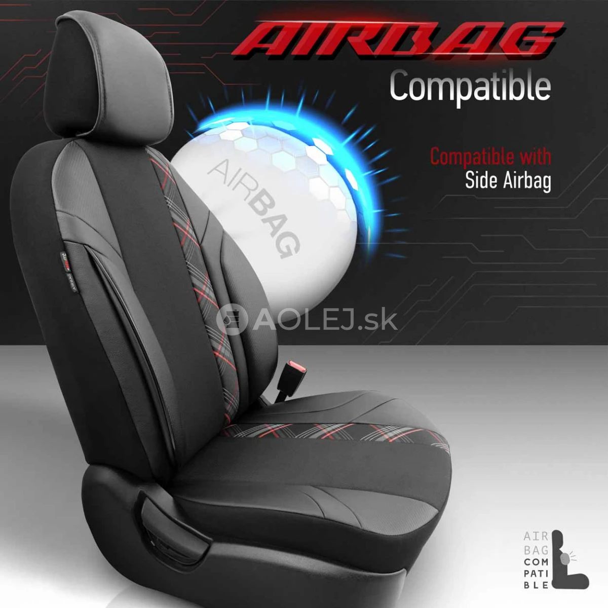 Štandardné poťahy majú certifikovaný šev AIRBAGový, vďaka čomu sú vhodné pre autá s bočnými airbagmi v sedadlách, ako aj pre štandardné sedadlá. Vďaka použitiu špeciálneho švu pokrývajú sedadlá úplne bez toho, aby narúšali prácu AIRBAGOV.