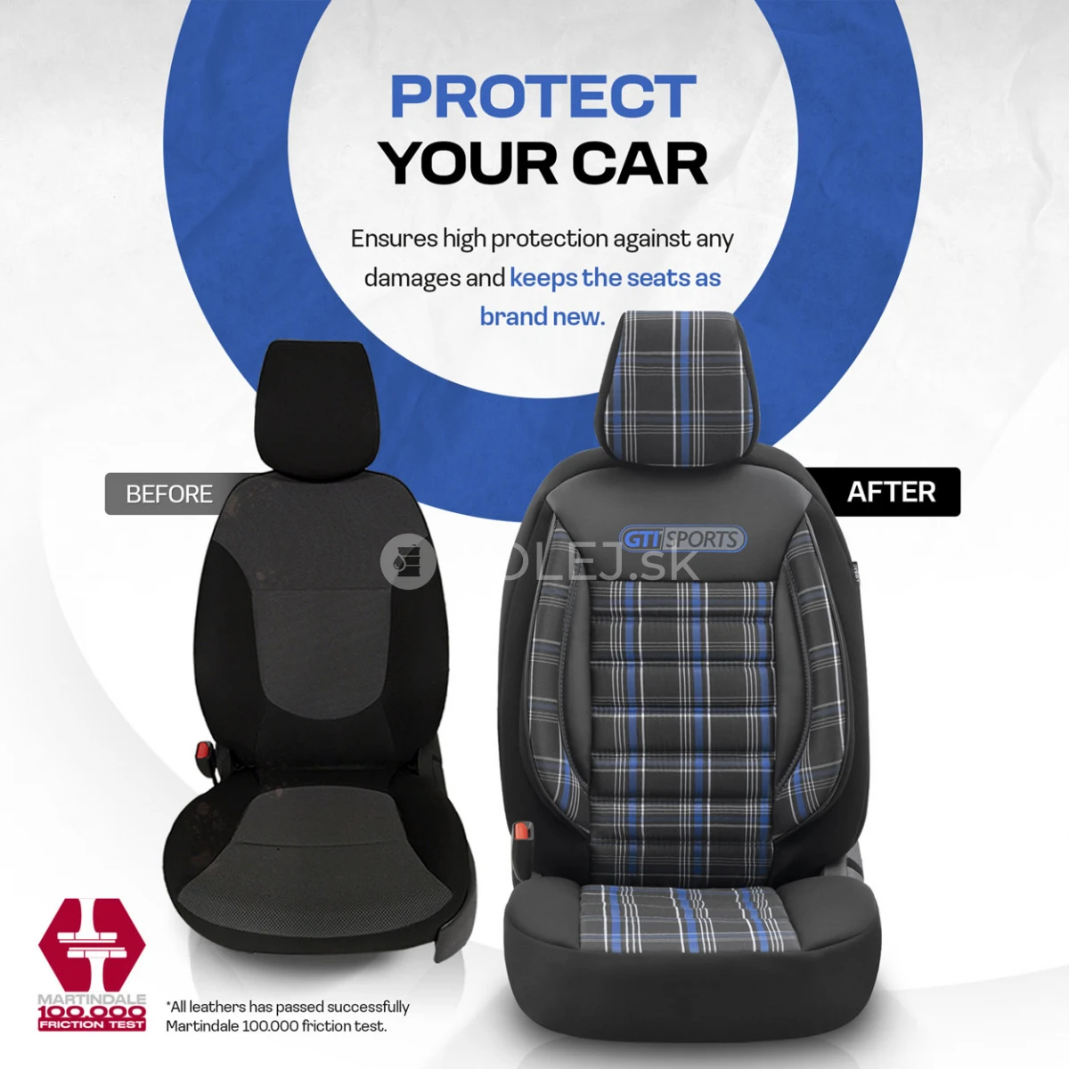 Poťahy úplne zakrývajú sedadlá, ktoré dokonale chránia sedadlá pred nečistotami, sú odolné a ľahko sa čistia a vďaka svojim módnym vzorom osviežia interiér a zlepšia jeho estetiku.