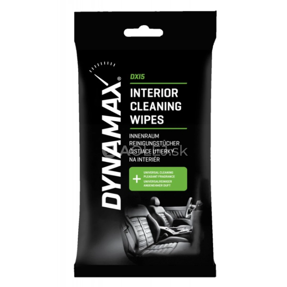 Dynamax DXI5 Vlhčené utierky na interiér sú vysoko účinné univerzálne čistiace utierky, ktoré bezpečne odmasťujú a odstraňujú nečistoty z plastových a gumených povrchov, skla, kovu, imitácie kože, mechanických dielov, smaltovaného, či lakovaného povrchu a iných materiálov. Výborné na čistenie textilných častí interiéru, nezanechávajú fľaky. Príjemne parfumované. Nepoužívať na volant alebo riadiacu páku.