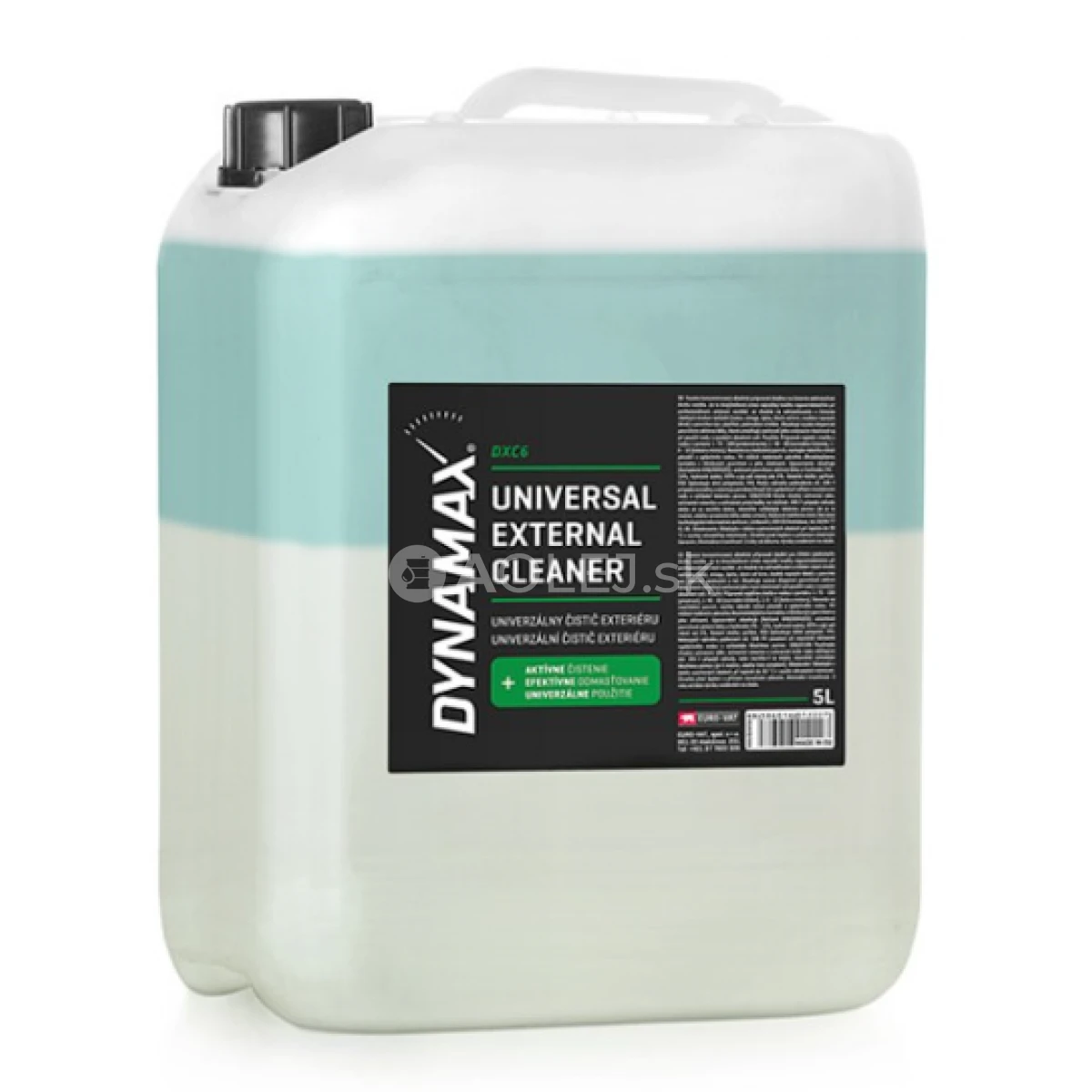 Dynamax DXC6 Univerzálny čistič exteriéru je vysoko koncentrovaný alkalický prípravok ideálny na čistenie akéhokoľvek druhu vozidla. Je to dvojzložková zmes najvyššej kvality nepostrádateľná pri profesionálnom umývaní vozidiel. Je vhodná na odmasťovanie a čistenie všetkých druhov nečistôt (tukov, smogu, špiny, škvŕn od krvi, zvyškov ropných látok) z povrchov áut, plachiet, podvozkov a kolies. Obsahuje vysoko disperzné povrchovo aktívne látky, ktoré umožňujú zachovať jeho umývacie vlastnosti aj pri použití vody s vysokým obsahom solí.
