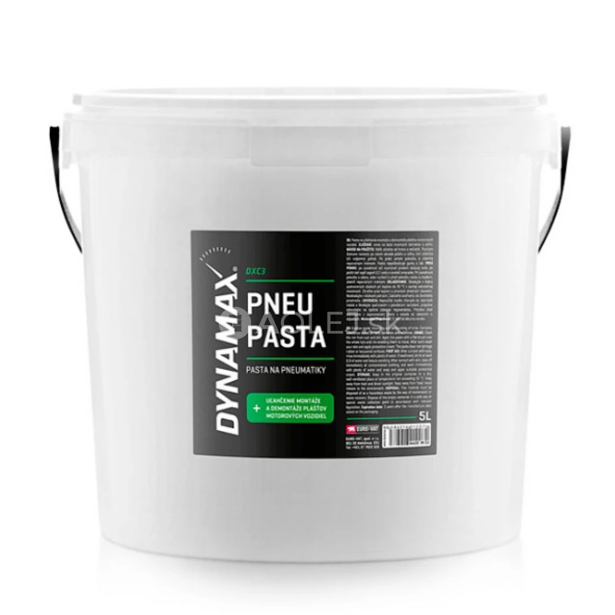 Dynamax DXC3 Pneupasta je pasta na uľahčenie montáže a demontáže plášťov motorových vozidiel. Ráfik očistite od hrdze a nečistôt. Plochým štetcom naneste po celom obvode plášťa a ráfika, čím uľahčíte ich vzájomný pohyb. Po práci umyte pokožku a ošetrite reparačným krémom. Pasta nepoškodzuje gumu a lak.