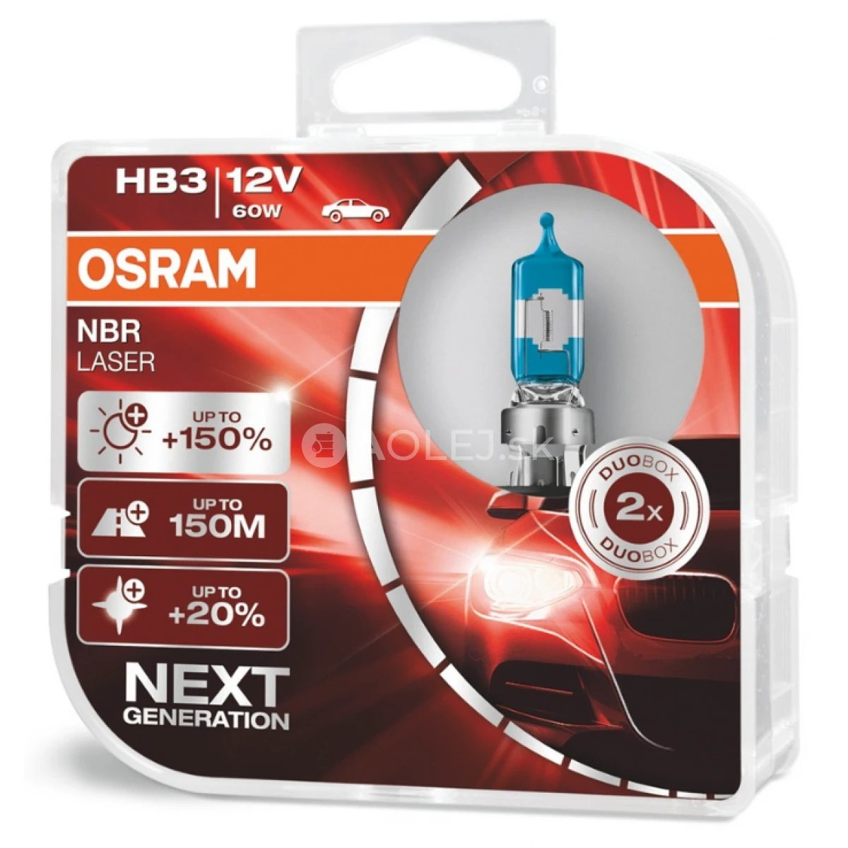 Osram HB3 12V 60W P20d Night Breaker Laser je autožiarovka ktorá posúva hranicu osvetlenia na úplne nový level! Experti z dielne OSRAM vyvinuli unikátny produkt, ktorý ponúka nadštandardné hodnoty v oblasti automobilového osvetlenia. Osram Night Breaker Laser +150% druhej generácie je pokračovaním úspešnej rady ktorá sa stala veľmi populárna po celom svete. Osram Night Breaker Laser 2 generácie prináša silné svetlo ktoré vás presvedčí svojím výkonom a vašu nočnú jazdu doslova premení na deň. Autožiarovky Osram Night Breaker Laser +150% so svojími excelentnými vlastnostami sa stanú vašim najpríjemnejším spoločníkom na cestách. Silné svetlo ktoré produkjú, vám nedovolí nadobudnúť pocit únavy a vy tak budete môcť zareagovať na každú prekážku včas. Zvýšená intenzita svetla nie je jediná výhoda ktorú ponúka ďalšia generácia Night Breaker Laser +150%.