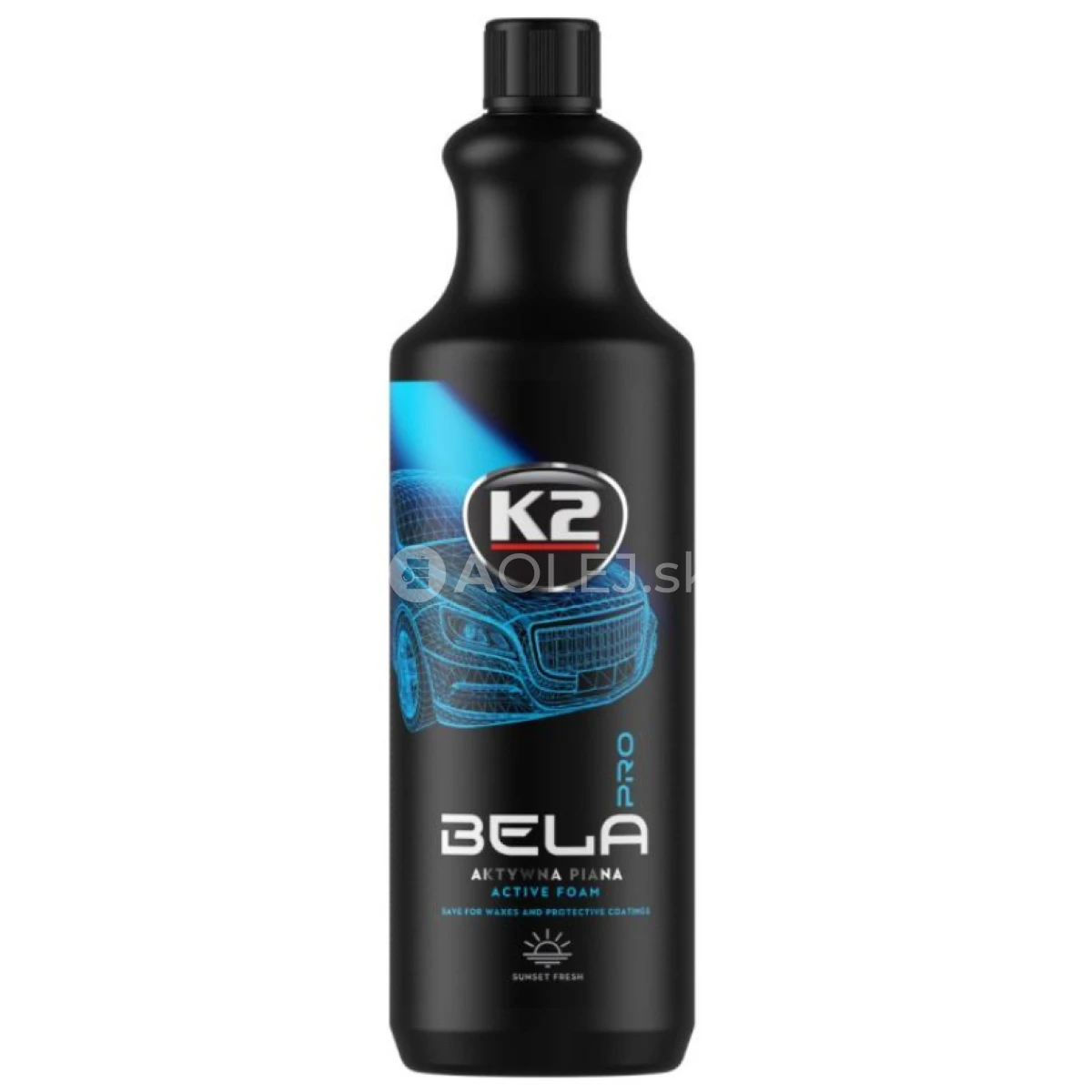 K2 Bela Pro Sunset Fresh /aktívna pena/ je aktívna pena s neutrálnym pH a veľmi príjemnou vôňou. Vytvára bohatú a našuchorenú penu s hustou konzistenciou. Má neutrálne PH a preto je bezpečná pre vosky a keramické ochranné nátery. Vytvára na karosérii vozidla dlhotrvajúcu penu a účinne zmäkčuje nečistoty. Vďaka jedinečnej aróme ovocných plodov je práca s produktom veľmi príjemná. Je mimoradne vhodná na použitie v napeňovačkách, v tlakových zariadeniach a ručných napeňovačkách.
