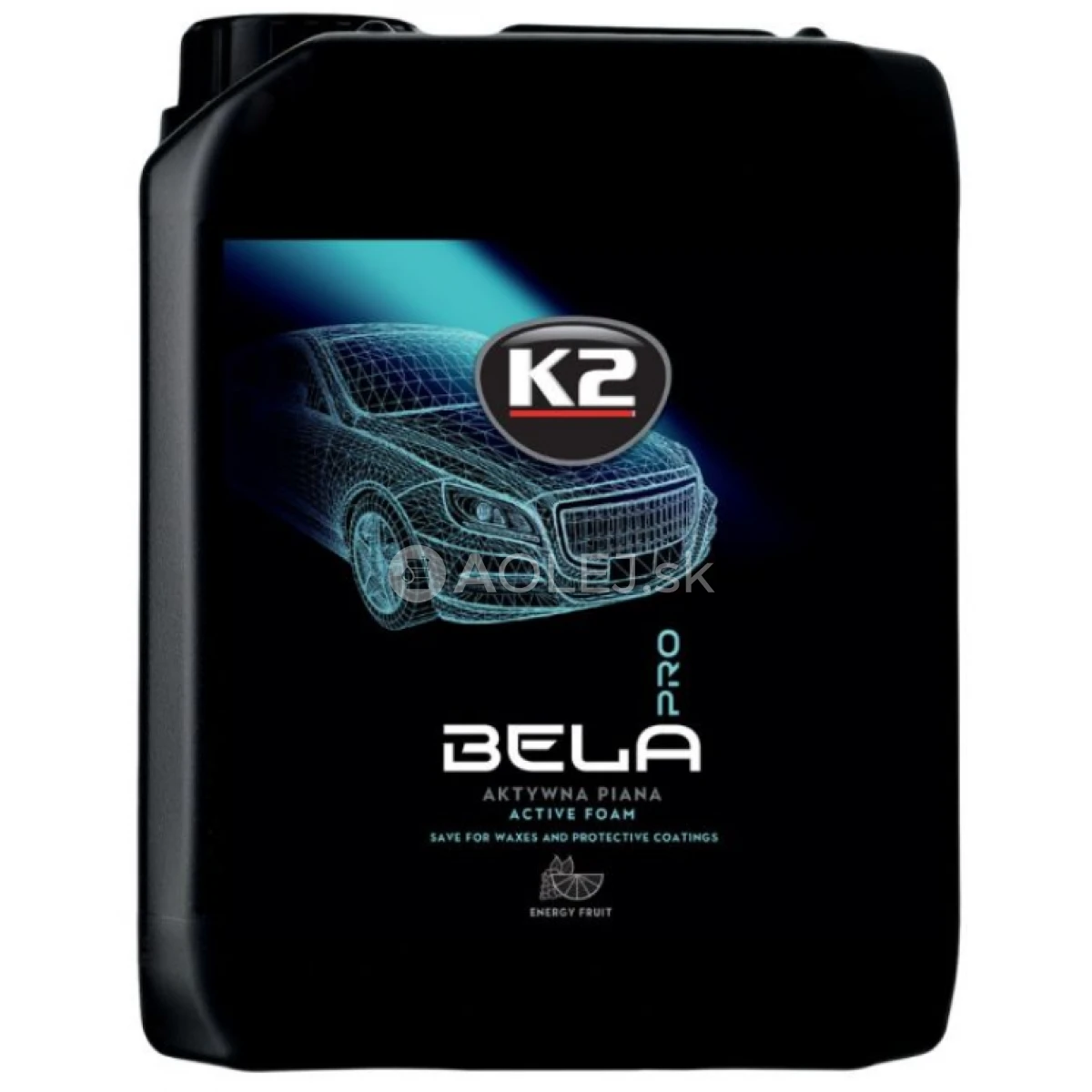 K2 Bela Pro Energy Fruit /aktívna pena/ je aktívna pena s neutrálnym pH a veľmi príjemnou vôňou. Vytvára bohatú a našuchorenú penu s hustou konzistenciou. Má neutrálne PH a preto je bezpečná pre vosky a keramické ochranné nátery. Vytvára na karosérii vozidla dlhotrvajúcu penu a účinne zmäkčuje nečistoty. Vďaka jedinečnej aróme ovocných plodov je práca s produktom veľmi príjemná. Je mimoradne vhodná na použitie v napeňovačkách, v tlakových zariadeniach a ručných napeňovačkách. Vôňa: energické ovocie.
