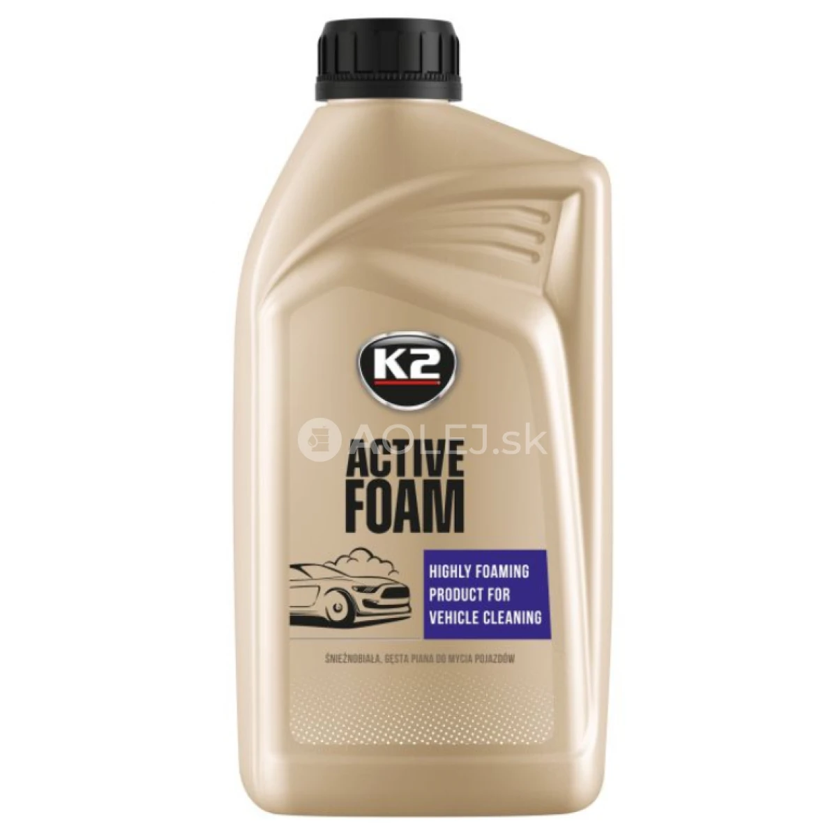 K2 Active Foam /aktívna pena/ je silne koncentrovaná aktívna pena. Prípravok je charakteristický veľkým množstvom trvalej a hustej peny pripomínajúcou šľahačku a taktiež veľmi príjemnou vôňou. Vysoký stupeň koncentrácie výrobku umožňuje rýchle a dôkladné umytie. Je ideálne vhodný na umývanie celého automobilu v automatických umyvárkach ako aj pomocou penotvornej pištole.