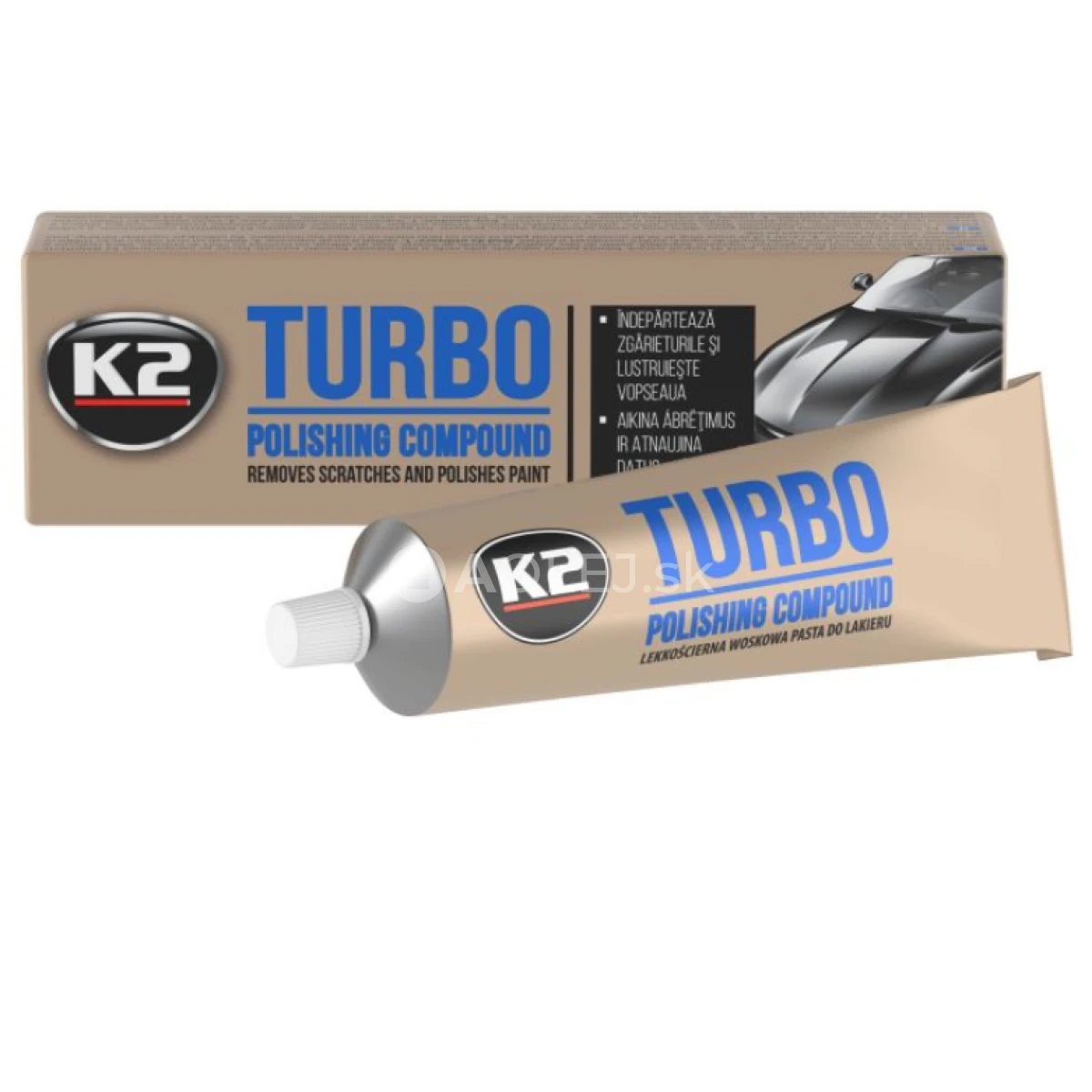 K2 Turbo je vynikajúca vosková pasta na karosériu vyskúšaná miliónmi zákazníkov. V snahe priniesť dokonalý produkt, vytvorili sme recept pasty K2 TURBO pomocou špeciálnych nanočastíc. Používa sa pri čistení, leštení a konzervovaní autokarosérie. Odstraňuje aj tie najmenšie škrabance a poškodené povrchy laku a metalízy a prinavracia autolaku „nový vzhľad“. Brúsna pasta s voskom. Súčasne brúsi, voskuje a leští. Je lacná, zabezpečuje dobrý efekt a trvácnosť ochrannej vrstvy. Používa sa na všetky druhy lakov, taktiež metalizovaných povrchov. Odstraňuje zvetranú farbu, olej, asfalt, a zvyšky hmyzu. Ľahko sa nanáša a nevyžaduje veľké úsilie na leštenie. Starajte sa o svoje zdravie. Je bezpečná pre zdravie a životné prostredie vďaka špeciálnym prísadám. Preto nemusí byť označená "škodlivá", alebo "dráždivá" ako iné podobné produkty na trhu.