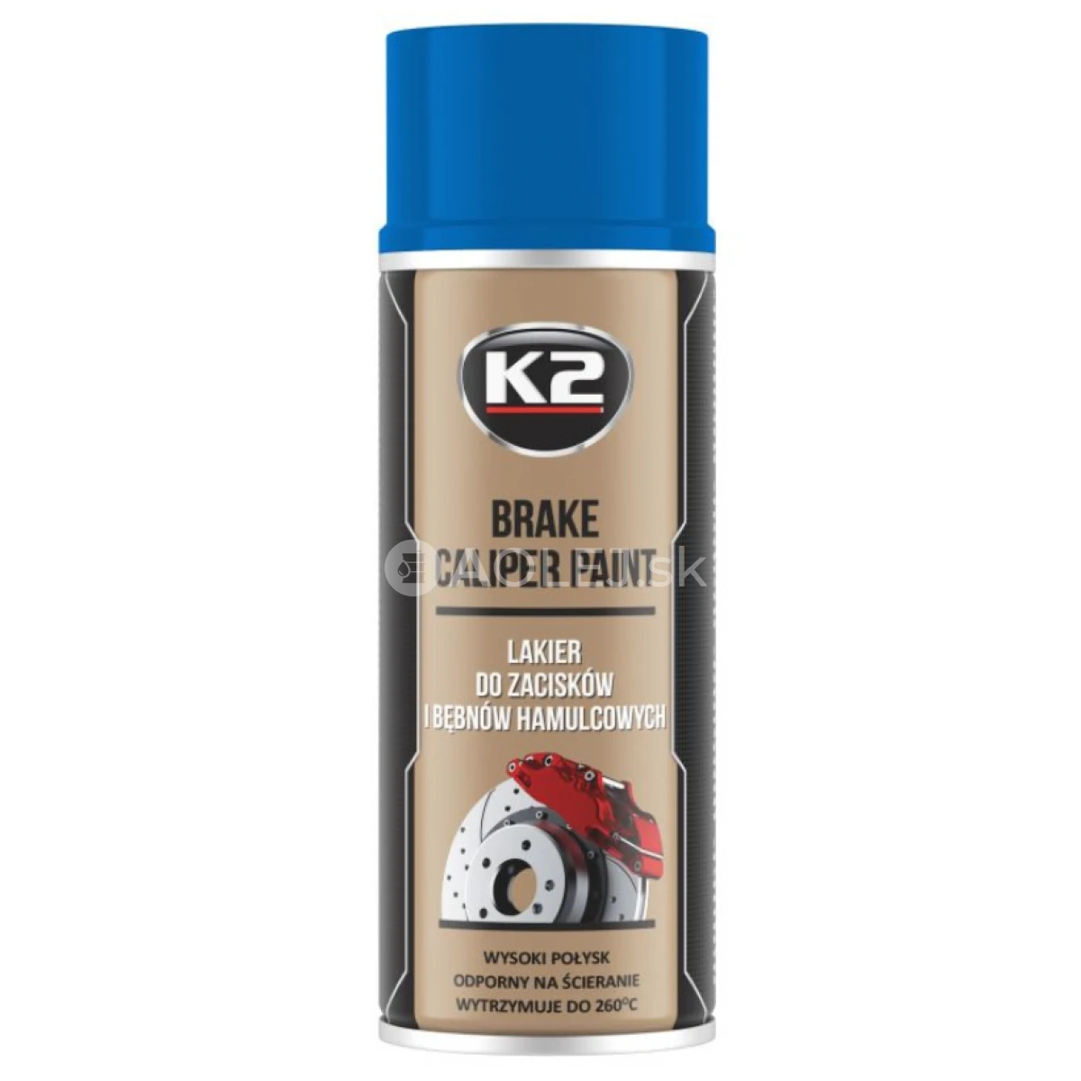 K2 Brake Caliper Paint Blue je profesionálny lak na lakovanie brzdových strmeňov a bubnov. Špeciálna receptúra terminálovej farby bola vyvinutá na báze živíc najvyššej kvality. Vďaka tomu vytvára K2 Brake Caliper Paint odolný náter s vysokou teplotnou odolnosťou až do +260 stupňov Celzia. Farba brzdových strmeňov v plechovke K2 dodáva strmeňom módny a štýlový povrch s vysokým leskom. Lak vytvorený na povrchu strmeňa po lakovaní je vysoko odolný voči oderu, mechanickému poškodeniu, brzdovému prachu, chemikáliám (vrátane kvapalín na čistenie ráfikov), soli, benzínu, kyslým dažďom a nepriaznivým poveternostným podmienkam. Pôsobí aj proti korózii.