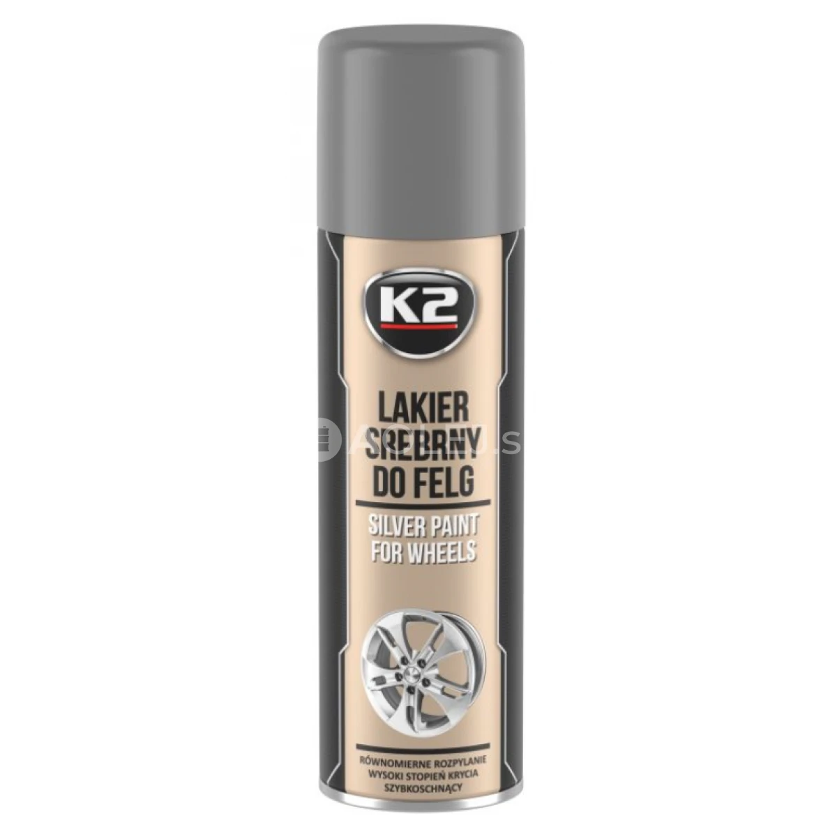 K2 Silver Lacquer For Wheels je strieborný lak na kolesá. Jedná sa o univerzálnu striebornú farbu v spreji vyvinutú predovšetkým pre automobilový priemysel, určenú pre ochranu ráfikov a diskov pred posypovými soľami, oxidáciou, koróziou a klimatickými vplyvmi. Farba je vhodná pre kompletnú renováciu alebo pre čiastočnú opravu bicyklov. Možno aplikovať napr. na drevo, kov, plast. Chráni pred koróziou a mechanickými činiteľmi.