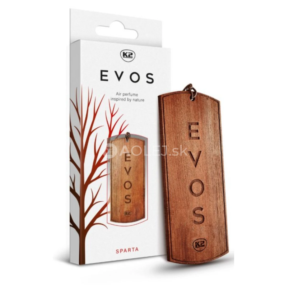 K2 Evos Sparta je prírodou inšpirovaný nezvyčajný osviežovač vzduchu do auta vo forme dreveného prívesku. Jedinečný tvar legendárnej psej známky zdobí interiér auta a dodáva mu eleganciu. Prívesok z masívneho dreva s obojstranným gravírovaním dodáva interiéru noblesný nádych ako voňavý šperk. Špeciálne vybrané vonné kompozície s esenciálnymi olejmi uchvacujú bohatosťou a hĺbkou vône na dlhú dobu.