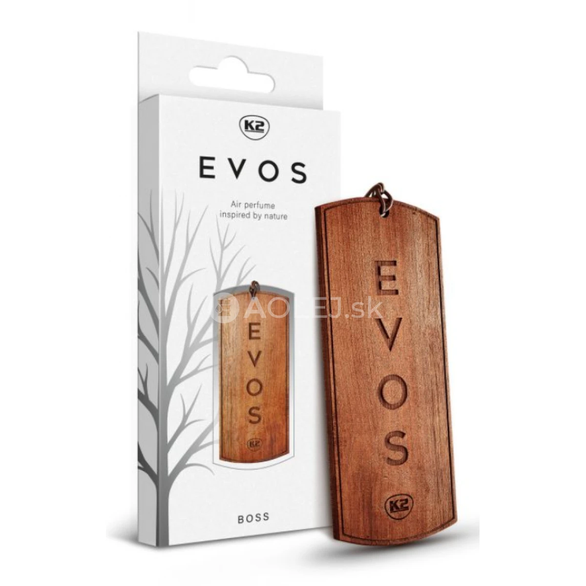 K2 Evos Boss je prírodou inšpirovaný nezvyčajný osviežovač vzduchu do auta vo forme dreveného prívesku. Jedinečný tvar zdobí interiér auta a dodáva mu rafinovanosť. Prívesok z masívneho dreva s obojstranným gravírovaním dodáva interiéru noblesný vzhľad. Špeciálne vybrané vône s esenciálnymi olejmi uchvacujú bohatosťou a hĺbkou vône na dlhú dobu. Splietaná, tmavá šnúrka vám umožní zavesiť ju kdekoľvek. Kompozícia vône BOOS je synonymom mužnosti, sily a klasickej elegancie. Šité na mieru pre vaše auto, ako rafinovaný oblek od krajčírskeho majstra. Rafinovaný silným balzamovým tónom arganového dreva, ruže a pačuli. Elegantná a nadčasová vôňa, ktorá nikdy nevyjde z módy.