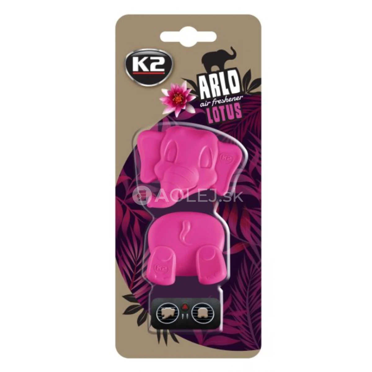 K2 Arlo Lotus je polymérový osviežovač vzduchu. Šibalský polymérový slon Arlo vás zavedie na úžasnú cestu. Jeho úlohou je vôňou pozmeniť interiér vášho vozidla na dlhú dobu a zvýšiť pohodlie cestovania. Robí to dokonale. Osviežovač sa skladá z dvoch prvkov vybavených sponami, ktoré sa inštalujú do vetracích otvorov. Môžete ho pripevniť ľubovoľným spôsobom. Máte k dispozícii hlavu a chrbát slona. Kde a ako ich umiestnite, závisí úplne od vašej kreativity. Polymérny materiál používaný v osviežovači vzduchu neznečistí ruky, je úplne bezpečný pre plasty a kožu používané v aute. Slon K2 ARLO je pripravený ísť. Vezmite ho na cestu a cestovanie autom ho urobí omnoho príjemnejším.
