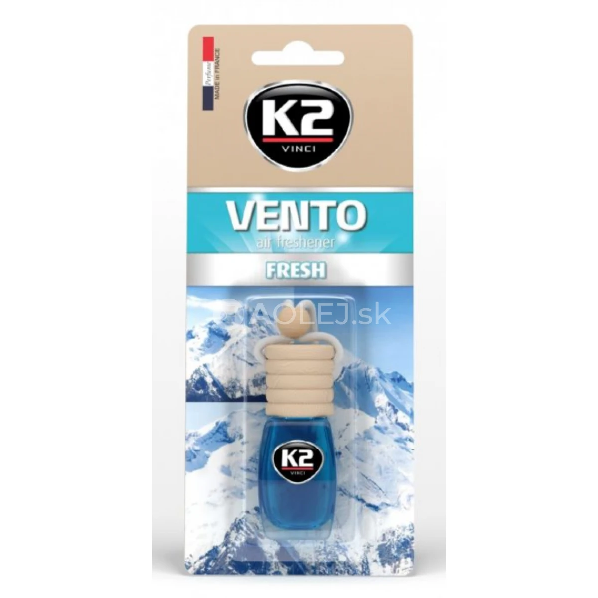 K2 Vento Fresh je exkluzívny osviežovač do auta s extrémne širokou škálou vôní. Zanecháva dlhotrvajúcu a príjemnú vôňu. Elegantná fľaša s namáčacím uzáverom. Výdrž 60 dní.