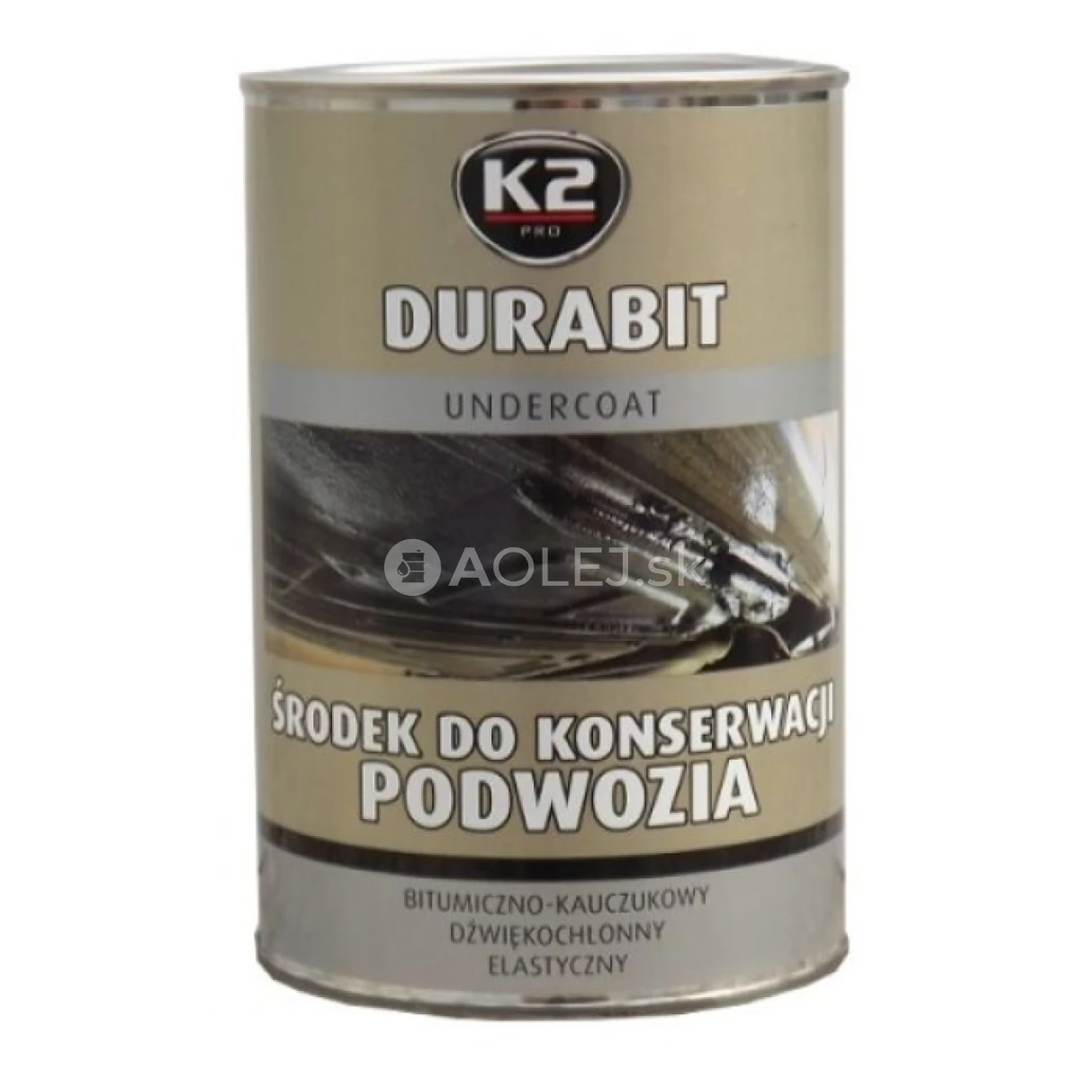 K2 Durabit je produkt na báze ochranného asfalto-gumového povlaku, ktorý chráni podvozok auta pred mechanickými vplyvmi, ako sú odletujúce kamene, voda, soľ, kyslé dažde a korózia. Vytvára jasnú štruktúru, ktorá zabezpečuje aj odhlučnenie vnútra vozidla.