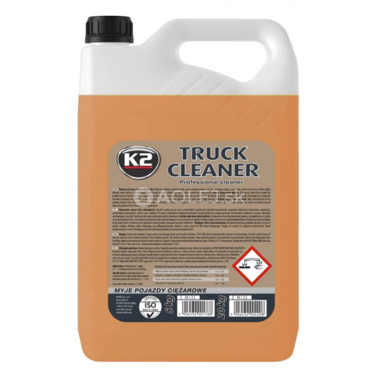 K2 Truck Cleaner umožňuje odstrániť všetky druhy nečistôt z rôznych typov povrchov. Je ideálny na umývanie nákladných áut, plachiet, železničných vagónov, kontajnerov, autobusov, dodávok, cisterien, rámov a podvozkov. Vo vysokom riedení sa výborne hodí ako prípravok na predumývanie osobných áut. Obsahuje antikorózne látky, takže sa dá použiť na čistenie akéhokoľvek kovového povrchu. Veľmi účinne zmäkčuje nečistoty, vďaka čomu stačí špinu opláchnuť vodou pod vysokým tlakom. Vysoká koncentrácia produktu ho robí veľmi účinným. Pri prvotnom umývaní v koncentrácii niekoľkých percent odstráni až 90 % nečistôt z ciest. Neaplikujte na vyhrievané povrchy. Umývajte v tieni. Nenechajte prípravok zaschnúť na čistenom povrchu.