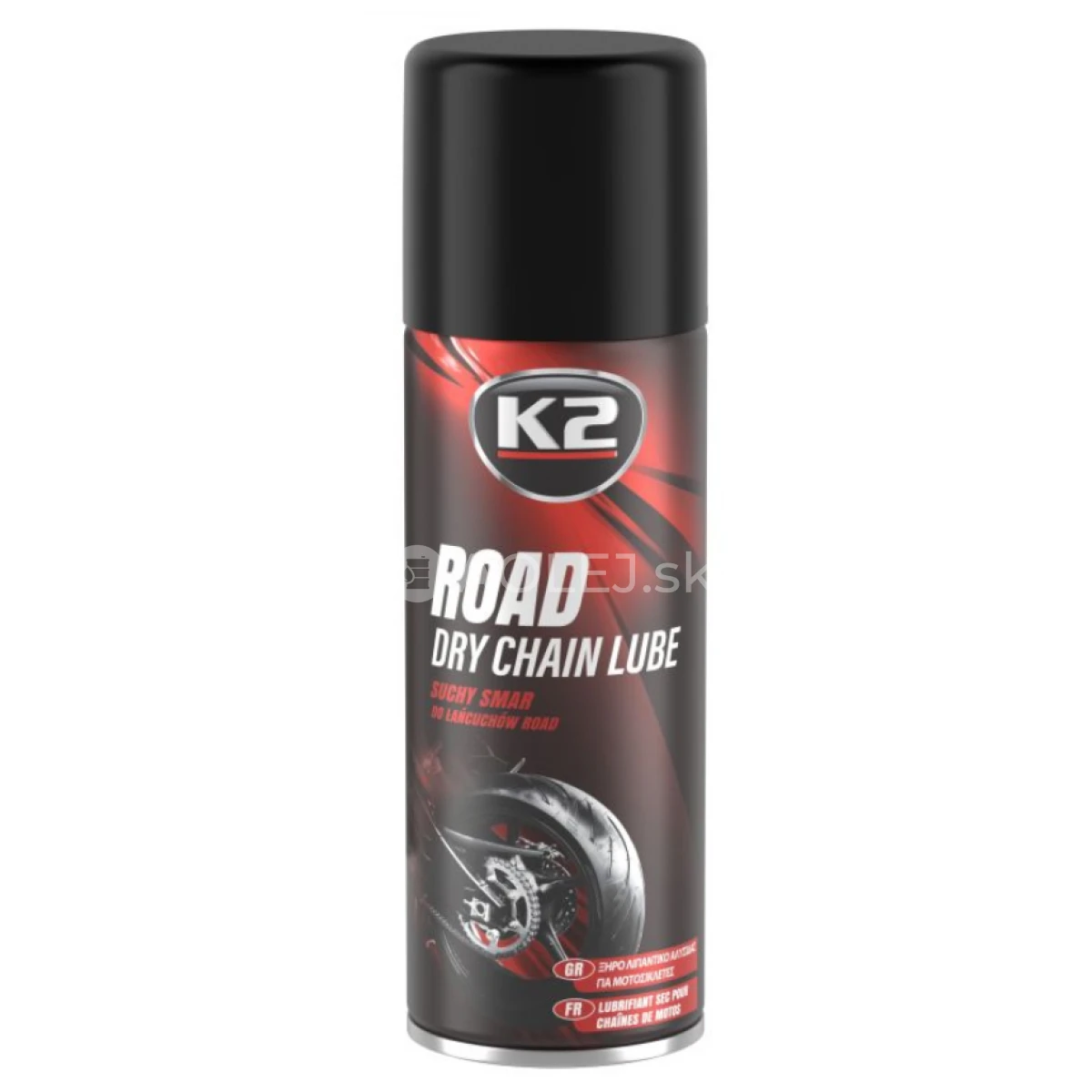 K2 Road Dry Chain Lube - Suché mazivo na cestné reťaze - je vysoko účinné mazivo, určené na mazanie reťazí a hnacích ozubených kolies cestných motocyklov. Vďaka svojim mazacím a penetračným vlastnostiam preniká do všetkých štrbín, čím chráni reťaz a ozubené kolesá pred predčasným opotrebovaním. Môže byť použitý vo všetkých typoch reťazí, x-ring, o-ring, z-ring atď.