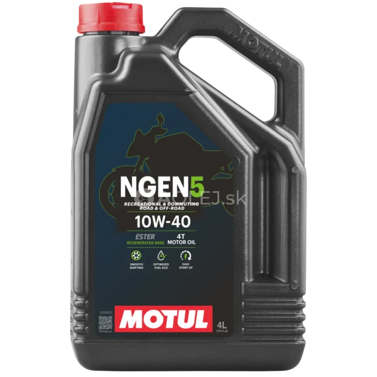 Motul NGEN 5 10W-40 4T je moderný motorový olej využíva inovatívnu udržateľnú technológiu s obsahom esterov Motul, ktoré zabezpečujú vysokú úroveň ochrany, spoľahlivosti a výkonu pri každodennom používaní aj pri rekreačných aktivitách. Je ideálnou voľbou pre jazdcov, ktorí hľadajú rovnováhu medzi výkonom, ochranou motora a ekologickým prístupom.