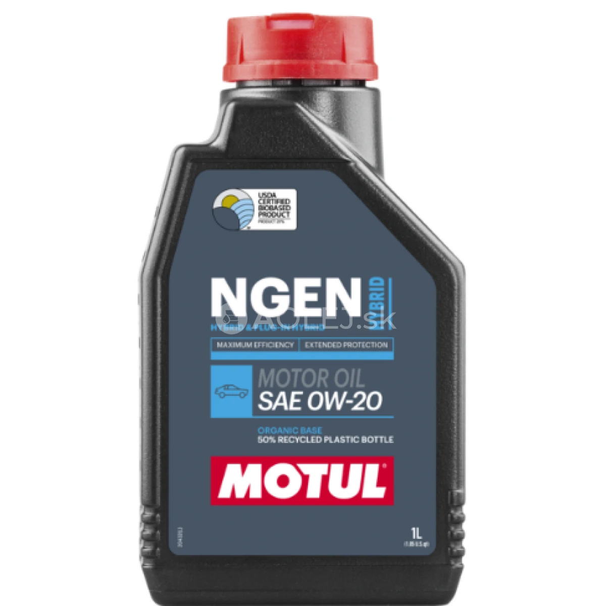 Motul NGEN Hybrid 0W-20 je syntetický motorový olej s "úsporou paliva" špeciálne navrhnutý pre hybridné elektrické vozidlá (HEV) a plug-in hybridné elektrické vozidlá (PHEV) vybavené najnovšími benzínovými motormi, preplňovanými turbodúchadlom alebo atmosférickým nasávaním, s priamym alebo nepriamym vstrekovaním, navrhnutý na použitie oleja SAE 0W -20 s nízkym trením a nízkou viskozitou HTHS (High Temperature High Shear) (≥ 2,6 mPa.s). MOTUL NGEN HYBRID 0W-20 je špeciálne vyvinutý pre technické výzvy kladené na benzínové hybridné automobily, ako je riedenie paliva, vodná emulzia, vysoký počet udalostí stop/štart a podmienky nižšej teploty oleja. Táto najmodernejšia formulácia je súčasťou úplne nového trvalo udržateľného konceptu Motul, pretože obsahuje 25 % organickej bázy (100 % obnoviteľných rastlinných syntetických základových látok) a je naplnená do 50 % recyklovanej a 100 % recyklovateľnej plastovej nádoby Motul. Tento organický základ využívajúci nefosílne obnoviteľné materiály obmedzuje dopad na životné prostredie a umožňuje spoločnosti Motul znížiť svoju uhlíkovú stopu o 25 % počas výrobného procesu. MOTUL NGEN je bežný názov na kvalifikáciu udržateľných radov v Motul pomocou rôznych technológií na formuláciu a balenie, aby sa znížila jeho uhlíková stopa. Toto špeciálne zloženie možno použiť aj pre benzínové motory vyžadujúce mazivo viskozitného stupňa SAE 0W-20 alebo mazivo „Fuel Economy“ vo viskozitnom stupni 20 s normami API SP-RC, API SP a/alebo ILSAC GF-6A. MOTUL NGEN HYBRID 0W-20 je vhodný pre batériové elektrické vozidlá (BEV) vybavené tepelným benzínovým motorom používaným ako predlžovač dojazdu. Kompatibilné s katalyzátormi a filtrami pevných častíc. Tento typ oleja môže byť nevhodný na použitie v niektorých motoroch. V prípade pochybností si pozrite návod na obsluhu.