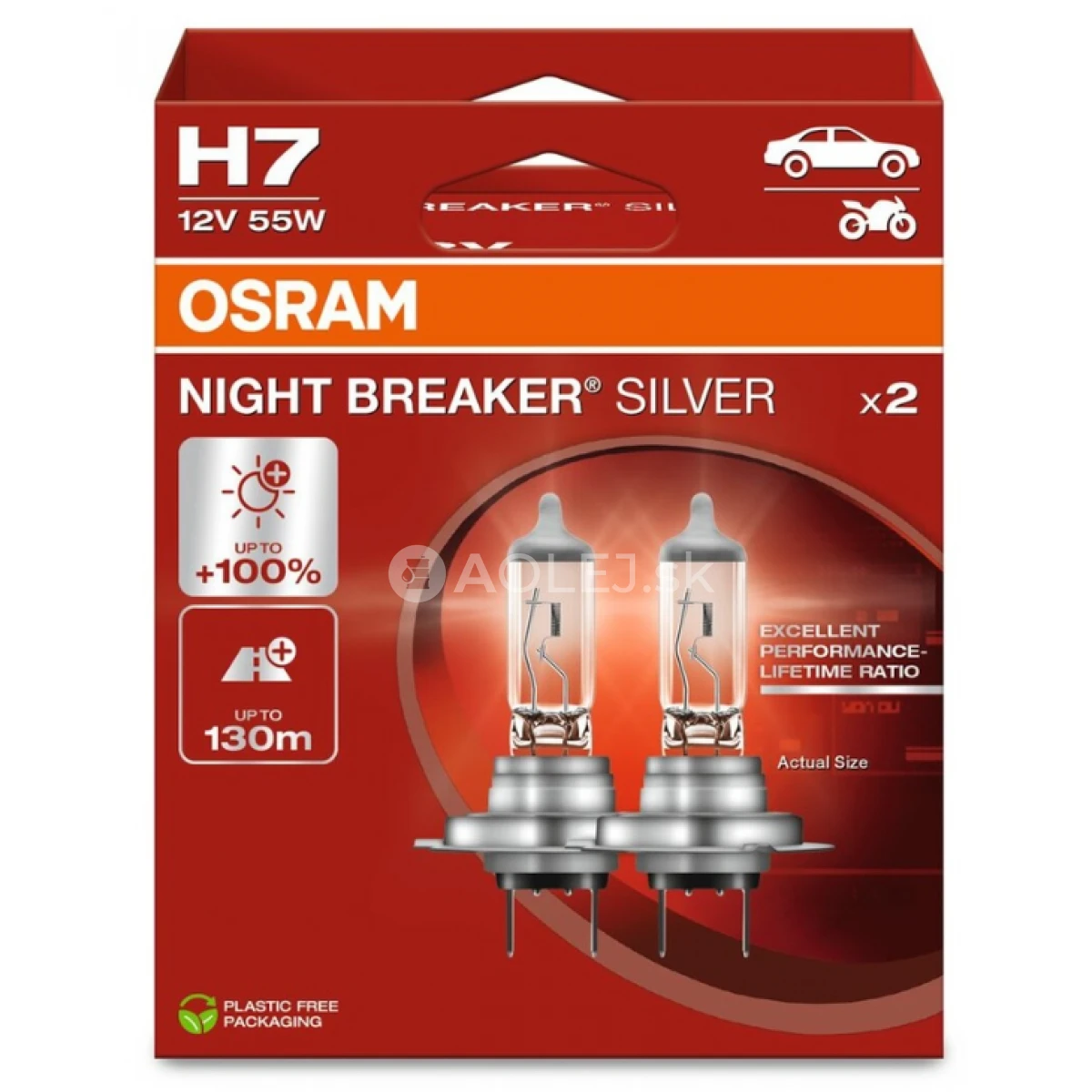 Osram H7 12V 55W PX26D Night Breaker Silver nahrádza radu Silverstar 2.0, ktorá bola obľúbená svojim pomerom cena/výkon. Vďaka vzácnemu xenónovému plynu, ktorým je naplnená sklenená banka žiarovky sa podarilo posunúť úroveň osvetlenia týchto svetelných zdrojov ešte o krok daľej. So sériou Night Breaker Silver ponúka OSRAM výkonú halogenovú automobilovú žiarovku s optimalizovanou životnosťou.