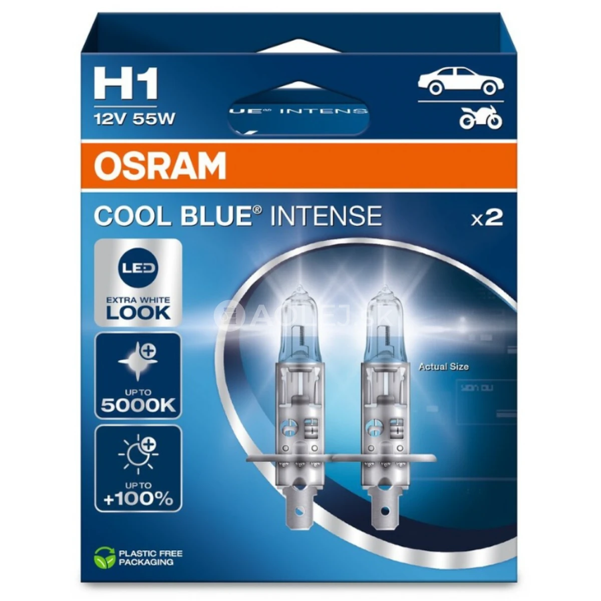 Osram H1 12V 55W P14,5s Cool Blue Intense Nextgen sú halogénové žiarovky. Oproti klasickým halogénovým žiarovkám produkujú Cool Blue Intense svetlo s teplotou chromatickosti až 5000 Kelvinov, takže farba svetla pripomína xenónové výbojky. Všetko je pritom plne legálne a Cool Blue Intense majú homologáciu ECE a spĺňajú všetky požiadavky EU. Sú teda dostupné pre všetky využitia predného osvetlenia. Osram Cool Blue Intense sú žiadané najmä zo strany vodičov nadšených z dizajnu. Okrem estetických výhod však ponúkajú tieto halogénové žiarovky aj dôležité parametre osvetlenia. V porovnaní so štandardnými halogénovými žiarovkami majú o 20% vyššiu intenzitu svetla, to znamená, že prípadné prekážky alebo osoby môžete spozorovať skôr a teda máte možnosť zareagovať skôr na vzniknutú situáciu na ceste.