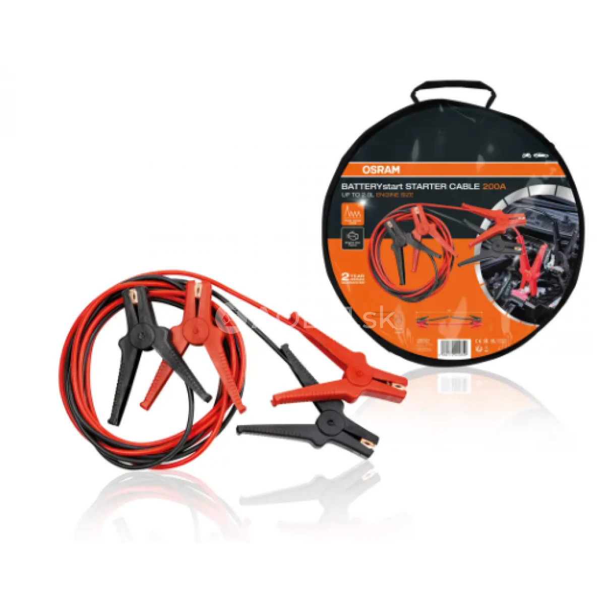 Osram Štartovacie káble 200A 3m je vysoko kvalitný štartovací kábel určený na profesionálne i súkromné použitie. Káble sú vyrobené z pomedeného hliníka, ktorý znižuje odpor kábla a umožňuje konštantný a efektívny prenos náboja. Štartovací kábel má dĺžku 3 metre s plochou prierezu 8,5 mm². Vďaka dĺžke a ploche prierezu je možné naštartovať vozidlá so zážihovými motormi so zdvihovým objemom až 2,0 l, pretože je možné dosiahnuť špičkový prúd až 200 A pri súčasnom trvalom menovitom prúde 100 A. Je vhodný pre napätie 6V a 12V.