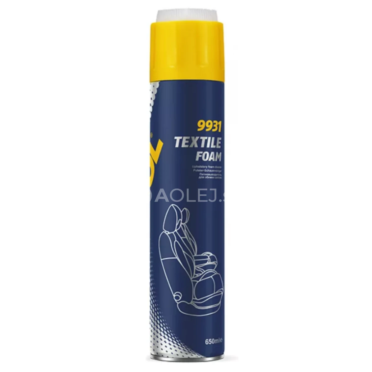 MANNOL Textile foam je vysoko účinný penový čistiaci prostriedok na textil. Odstraňuje rôzne nečistoty z textilných prvkov interiéru vozidla ako sú sedadlá, dvere, čalúnenia nábytku, kobercov, látok atď.