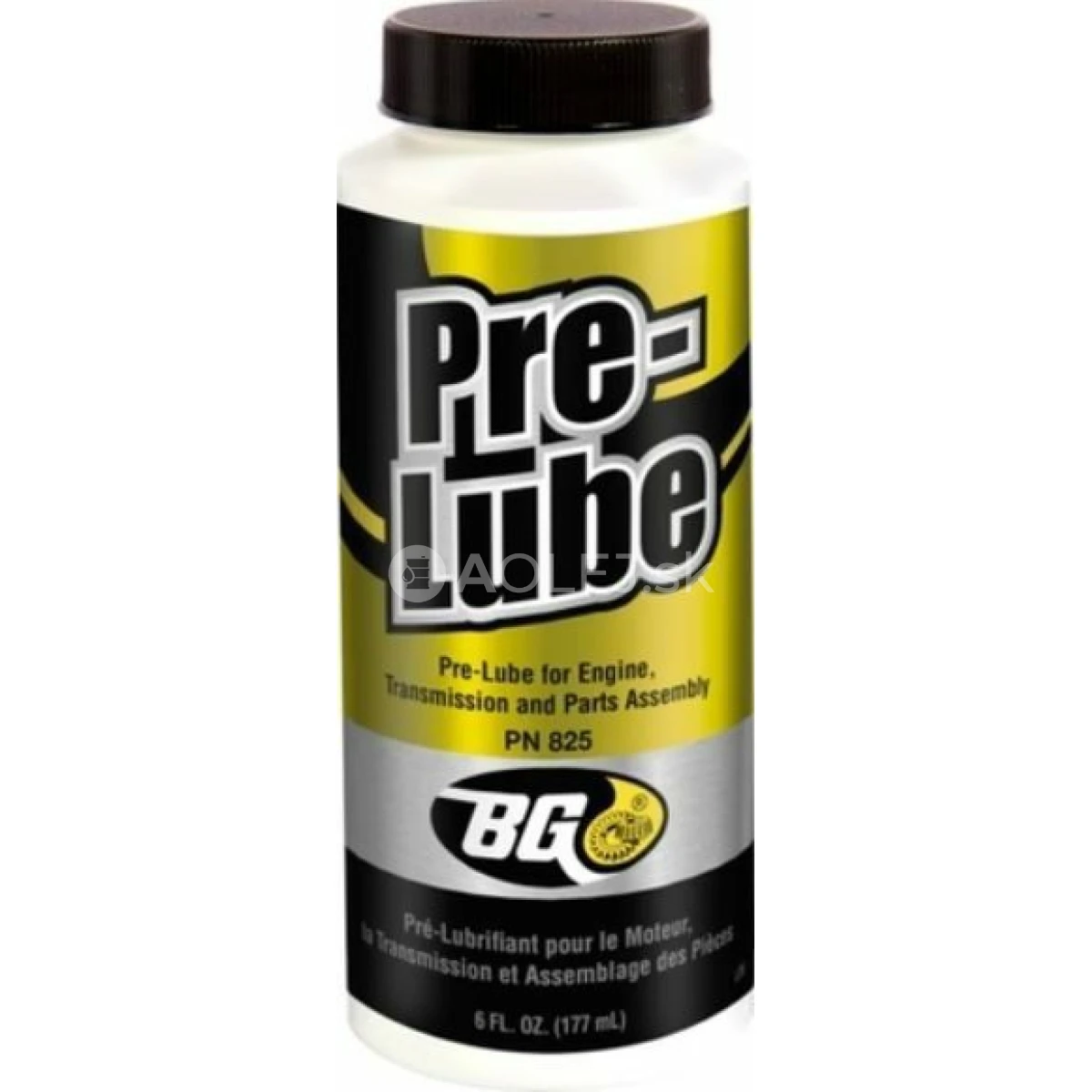 BG 825 Pre-Lube je montážne mazivo je húževnaté mazivo kombinované s prísadami proti odieraniu a opotrebeniu. V stresových podmienkach majú zložky v BG Pre-Lube účinok vyhladzovania a utesňovania povrchov kovových komponentov. Dokonca aj ten najjemnejší kovový povrch v novo zostavených motoroch je mikroskopicky drsný; preto by mali byť všetky nové diely pred montážou ošetrené prípravkom BG Pre-Lube.