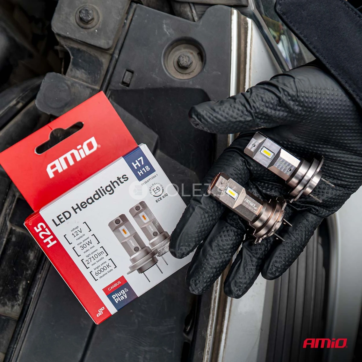 LED žiarovky hlavného svietenia Séria H25 CANBUS H7 H18 12V 30W AMIO-04712 predstavujú vysoko výkonné riešenie pre hlavné automobilové svetlá, ktoré spája maximálnu svietivosť, spoľahlivosť a jednoduchú montáž. Sú navrhnuté pre vodičov, ktorí požadujú lepšiu viditeľnosť, vyššiu bezpečnosť a moderný vzhľad vozidla bez kompromisov. Vďaka svetelnému toku až 2710 lúmenov a farebnej teplote 6000 K (studená biela) poskytujú tieto LED žiarovky jasné, rovnomerné a presne smerované svetlo, ktoré výrazne zlepšuje orientáciu na ceste počas nočnej jazdy, dažďa, hmly či zníženej viditeľnosti.