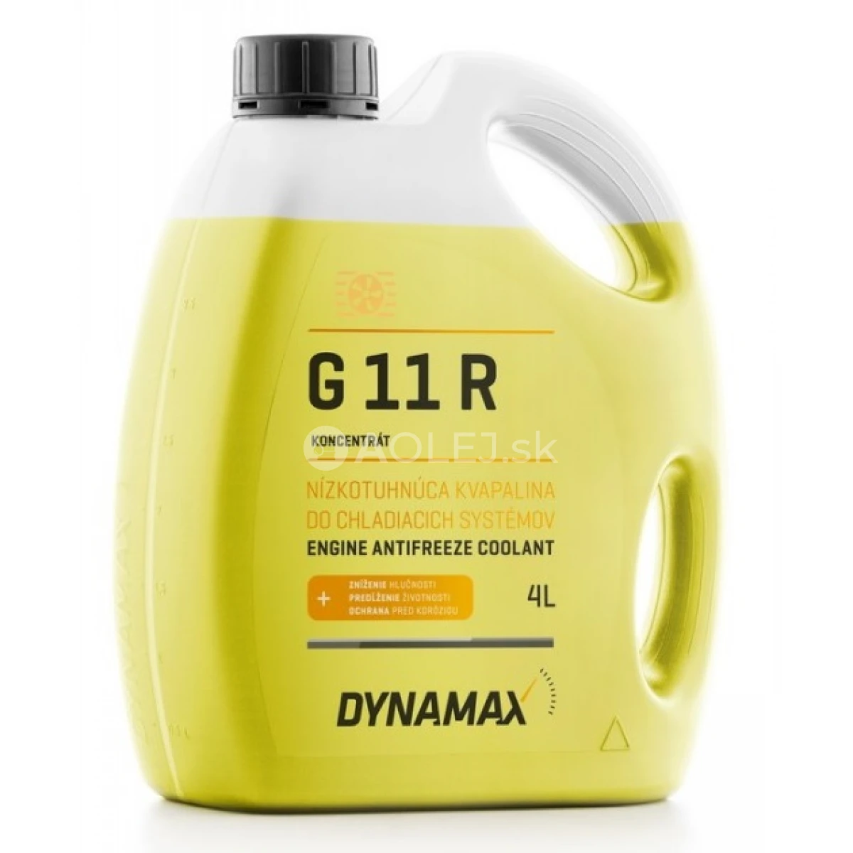 Koncentrovaná nízkotuhnúca chladiaca kvapalina celoročne chráni chladiaci systém motorového vozidla pred pôsobením mrazu a pred koróziou. Zaručuje veľmi dobrý prevod tepla. Spľňa požiadavky výrobcov automobilov Renault a Volkswagen podľa normy AST M D 3306. Chladiaca kvapalina DYNAMAX G11 R je špeciálne vyvinutá pre motorové vozidlá značky Renault. Aplikuje sa do čistého chladiaceho systému podľa postupu výrobcu automobilu.
