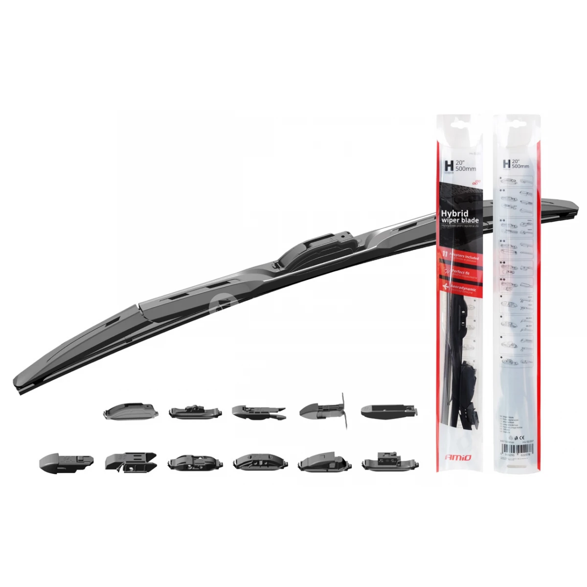 Hybridné stierače sú kombináciou výhod plochých aero a ramienkových stieračov. Vďaka tejto kombinácii sa stierač vyznačuje veľmi dobrým tlakom stieracej lišty proti čelnému sklu čo zabezpečí dokonalý zber vody aj za silných dažďov. Kovové časti sú vyrobené z odolnej, plne pozinkovanej ocele, ktorá chráni pred koróziou po dlhú dobu. Stierač má atraktívny aerodynamický vzhľad a obsahuje až 11 adaptérov prispôsobených 99% automobilov na našom trhu.