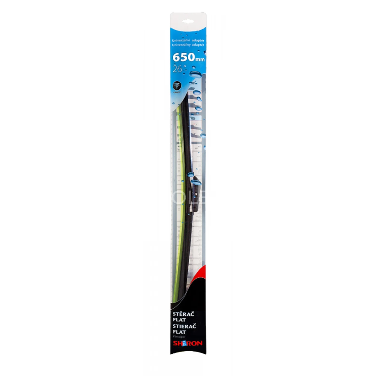 SHERON Stierač Flat UNI grafitový univerzálny bezramienkový (plochý) stierač s unikátnym roztváracím univerzálnym adaptérom, ktorý pasuje na 90% automobilov. Flat stierač obsahuje gumičku napustenú grafitom, ktorá predlžuje životnosť stierača v ochrannom zelenom plastovom púzdre.