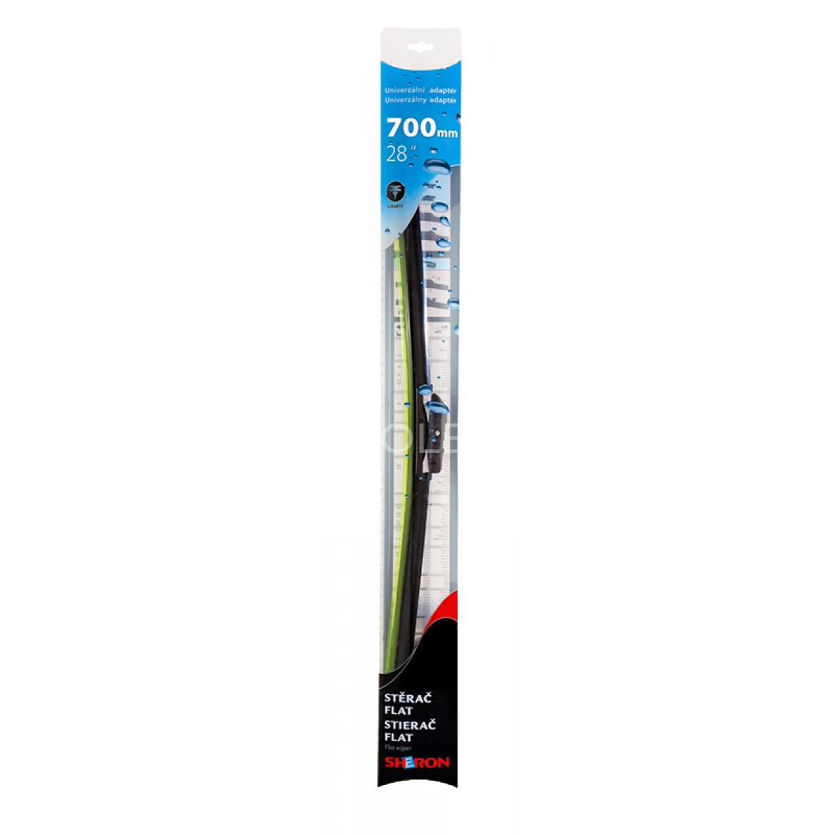 SHERON Stierač Flat UNI grafitový univerzálny bezramienkový (plochý) stierač s unikátnym roztváracím univerzálnym adaptérom, ktorý pasuje na 90% automobilov. Flat stierač obsahuje gumičku napustenú grafitom, ktorá predlžuje životnosť stierača v ochrannom zelenom plastovom púzdre.