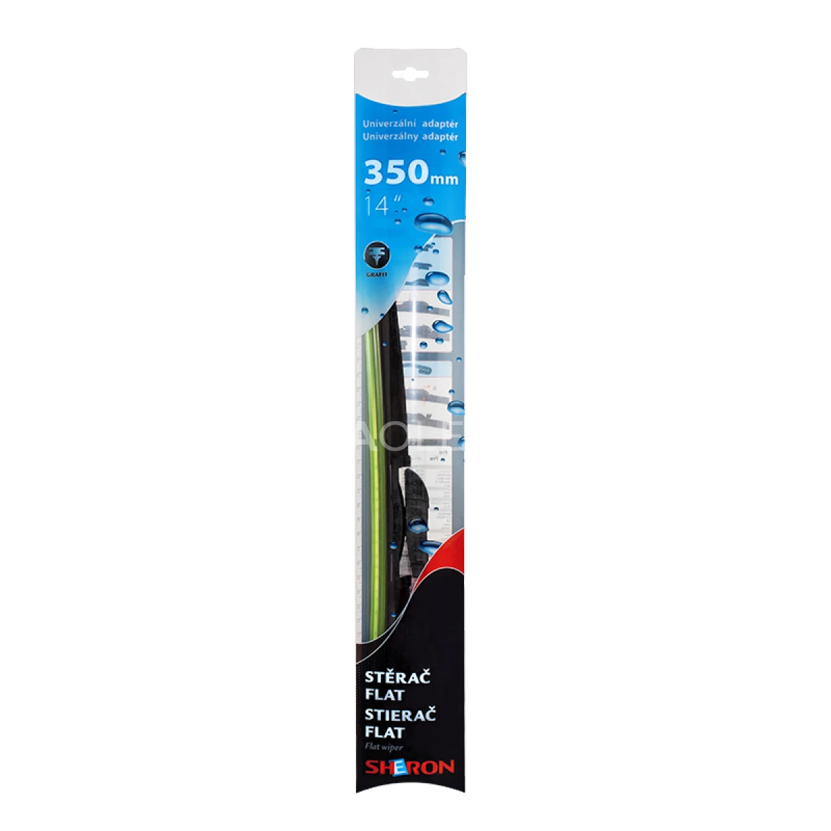 SHERON Stierač Flat UNI grafitový univerzálny bezramienkový (plochý) stierač s unikátnym roztváracím univerzálnym adaptérom, ktorý pasuje na 90% automobilov. Flat stierač obsahuje gumičku napustenú grafitom, ktorá predlžuje životnosť stierača v ochrannom zelenom plastovom púzdre.