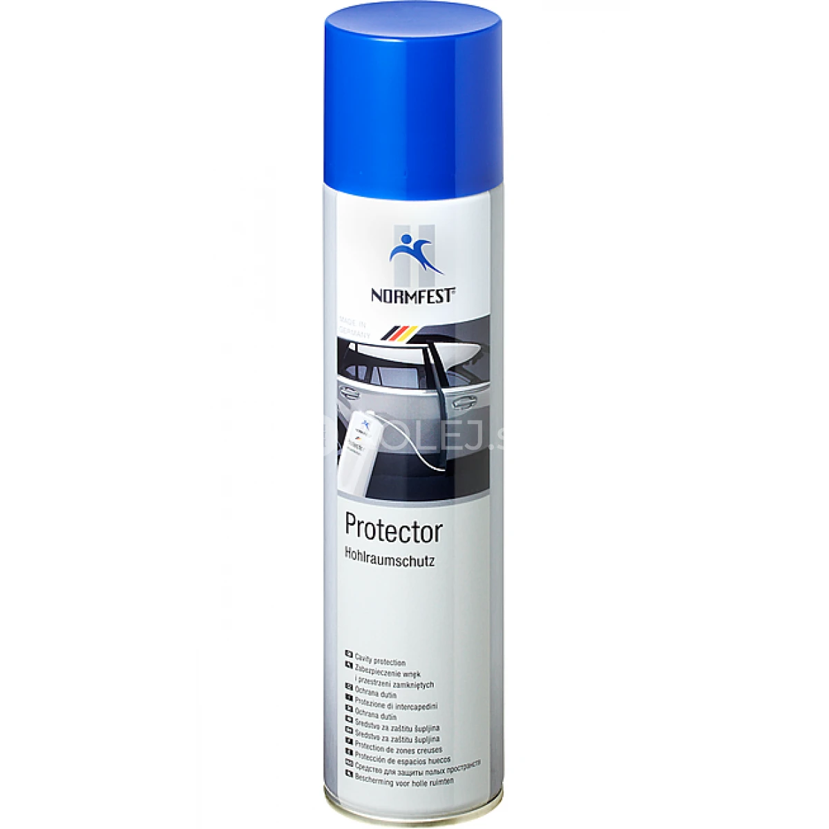 Konzervace dutin ve spreji Protector od firmy Normfest ošetřované místo překryje jako spolehlivý ochranný štít a chrání jej před vodou, kondenzátem a korozí. Tato ochrana dutin se používá do rohů, koutů a spár v podvozku a na spodku karosérie. Především při restaurování a opravách dutin na veteránech představuje tento konzervační sprej skutečně zázračnou zbraň v boji s časem. Máte poškozený lak na vozidle a nemáte zrovna čas to opravit? I tady vám pomůže konzervace dutin ve spreji Protector! Při aplikaci na poškozené místo působí jako antikorozní ochrana a brání narezivění kovu.