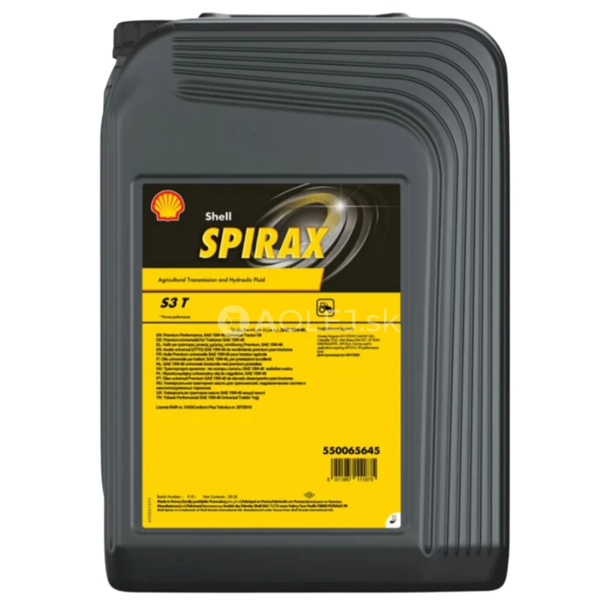 Shell Spirax S3 T je prémiový, výkonný olej SAE 15W-40 typu „Super Tractor Oil Universal“ (STOU) určený na použitie v širokej škále modernej poľnohospodárskej techniky.