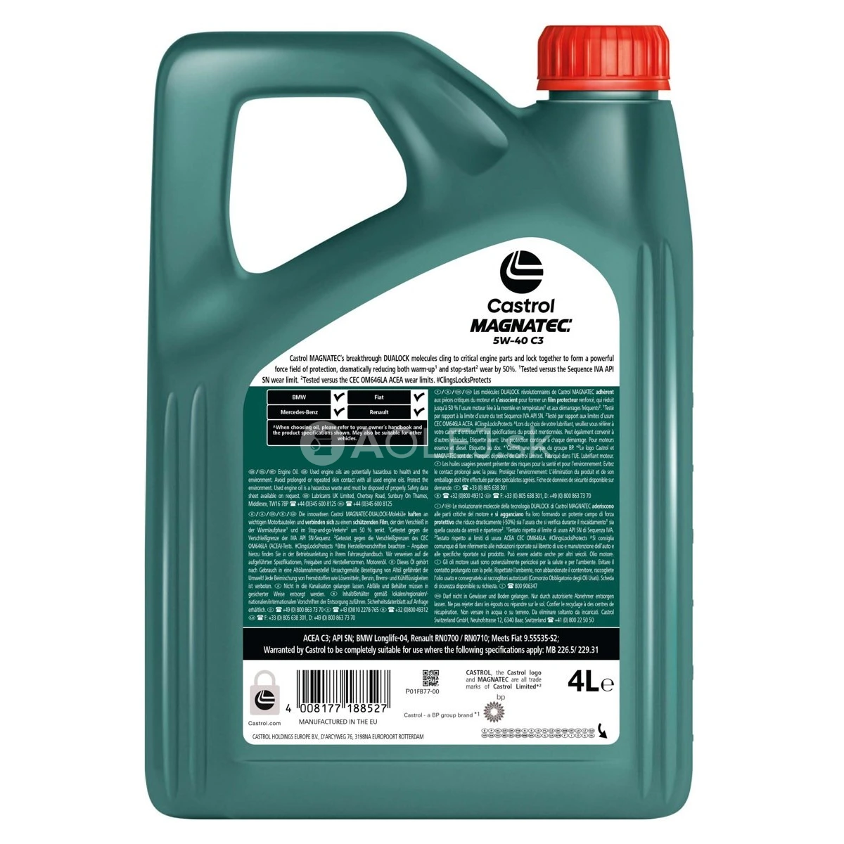 Castrol Magnatec 5W-40 C3 kombinuje "inteligentné" molekuly so syntetickou technológiou zaisťujúcou silnejší mazací film. Vhodný pre použitie v benzínových motoroch a dieselových motoroch, vrátane motorov vybavených filtrom pevných častíc. Vďaka "inteligentným" molekulám poskytuje viac ochrany v kritickej fáze štartu a rozjazdu a zaisťuje vynikajúci výkon za extrémnych podmienok studených štartov.