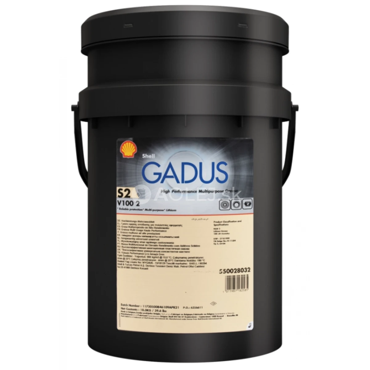 Shell Gadus S2 V100 2 je kvalitné, viacúčelové plastické mazivo na mazanie ložísk. Je vyrábaný na ropnom základe s obsahom lítneho mydla. Vyznačuje sa vysokou tepelnou stálosťou, dlhou životnosťou a vynikajúcimi protikoróznymi vlastnosťami. Pri použití vo valivých ložiskách poskytuje záruku bezporuchového chodu, umožňuje predĺžiť intervaly premazávania a tým znižuje náklady na údržbu.