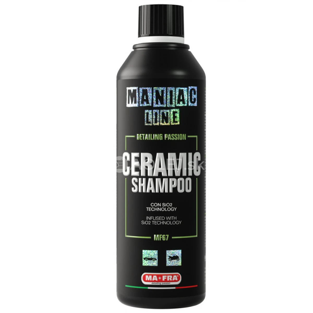 Tipy: Na zvýšenie účinnosti výrobku a trvania ochrany odporúčame chemickú dekontamináciu vozidla naším "MANIAC - Keramickým šampónom" alebo mechanickú dekontamináciu pomocou tyče Clay pred aplikáciou "MANIAC - Odstraňovača železa": dosiahne sa tým vyššia priľnavosť keramických polymérov SiO2 na karosérii.