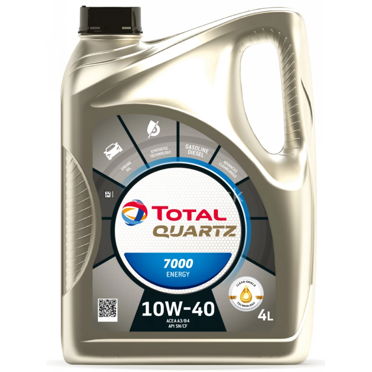 TOTAL QUARTZ 7000 ENERGY 10W-40 je polosyntetický motorový olej pre benzínové (viacventilové, s alebo bez katalyzátorov vrátane preplňovaných motorov) a dieselové spaľovacie motory s priamym vstrekovaním osobných a ľahkých úžitkových vozidiel bez DPF filtrov.