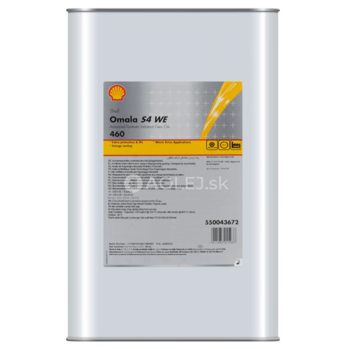 Shell Omala S4 WE 460 je plne syntetický, vysoko kvalitný prevodový olej na báze polyalkylénglykolov, vhodný predovšetkým na mazanie šnekových prevodov. Zaisťuje vynikajúci mazací výkon v náročných prevádzkových podmienkach, spoľahlivo chráni proti mikro-pittingu, umožňuje úsporu energie a predĺženie servisného intervalu.