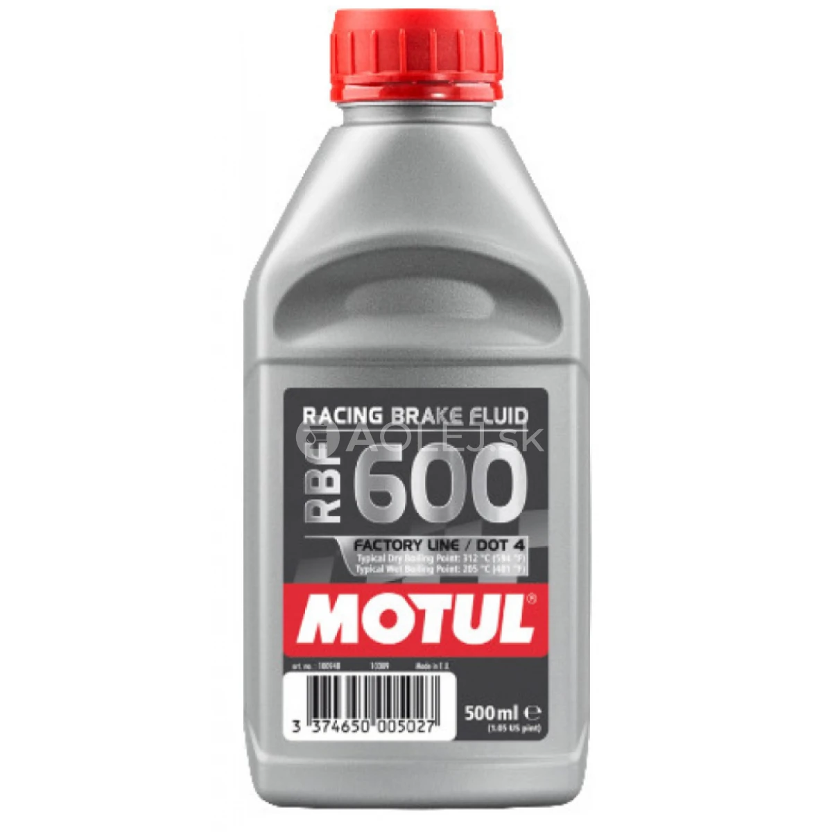 Motul RBF 600 Factory Line je extrémne vysoko výkonná brzdová kvapalina na báze polyglykolu. Výrazne prekonáva štandardy DOT 4. Každá nádoba je naplnená dusíkom, čo predlžuje skladovací "život" a eliminuje kontamináciu, kým je z výroby uzatvorená. Extrémne vysoký suchý bod varu 312° C / 594° F, čo pomáha zabrániť vädnutiu bŕzd počas tvrdého použitia, s veľmi krátkym časom na opätovné fungovanie. Mokrý bod varu 205° C / 401° F.