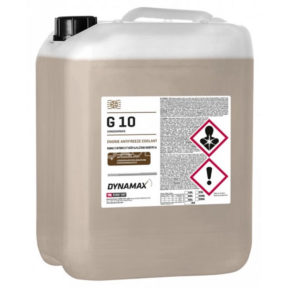 Dynamax Cool G10 je koncentrovaná nízkotuhnúca chladiaca kvapalina na báze etylénglykolu je určená pre všetky typy starších motorových vozidiel, poľnohospodárske a stavebné stroje. Celoročne chráni chladiaci systém pred koróziou a zabraňuje prehriatiu motorov v letných mesiacoch. Odporúčaná výmena je po troch rokoch. Výrobca zabezpečuje konzultácie a neručí za škody spôsobené nesprávnym použitím výrobku.