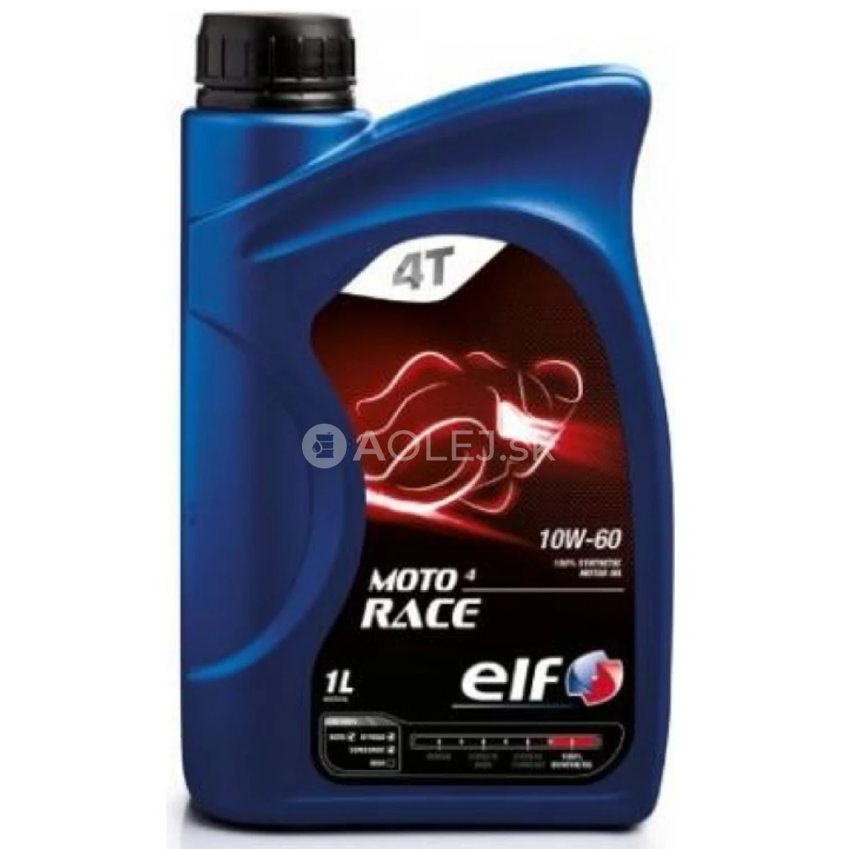 Elf Moto 4 Race 10W-60 100% syntetický olej Elf MOTO 4 RACE je koncipovaný do náročných športových podmienok. Jeho veľmi kvalitné zloženie vám umožní ísť na maximum a zvyšuje výkon vášho motora. Viskozita 10W-60 zvyšuje odolnosť olejového filmu voči extrémnym teplotným zmenám, má výnimočnú odolnosť voči oxidácii pri vysokých teplotách. Jeho vybrané prísady a 100% syntetický základ zabraňujú vzniku usadenín a udržiavajú hydrodynamické mazanie. Váš motor zostane čistý a zachová si všetku svoju silu. Flexibilná viskozita chráni váš motor vďaka vlastnostiam proti opotrebeniu aj pri najvyššej rýchlosti a v extrémnych situáciách zaťaženia.
