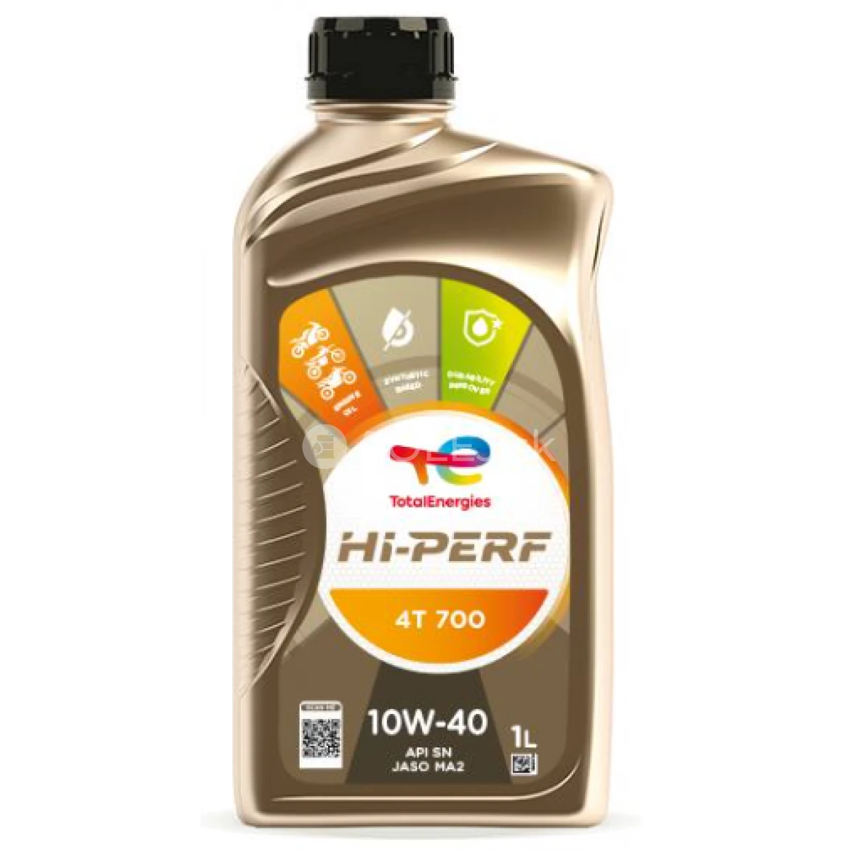 Total Hi-Perf 4T 700 10W-40 je syntetický motorový olej vyvinutý špeciálne pre štvortaktné motocykle. Využíva technológiu Durability Improver zvyšujúcu odolnosť a je vyvinutý špeciálne na to, aby poskytoval nepretržitý výkon vo všetkých jazdných podmienkach a vynikajúcu ochranu prevodoviek.