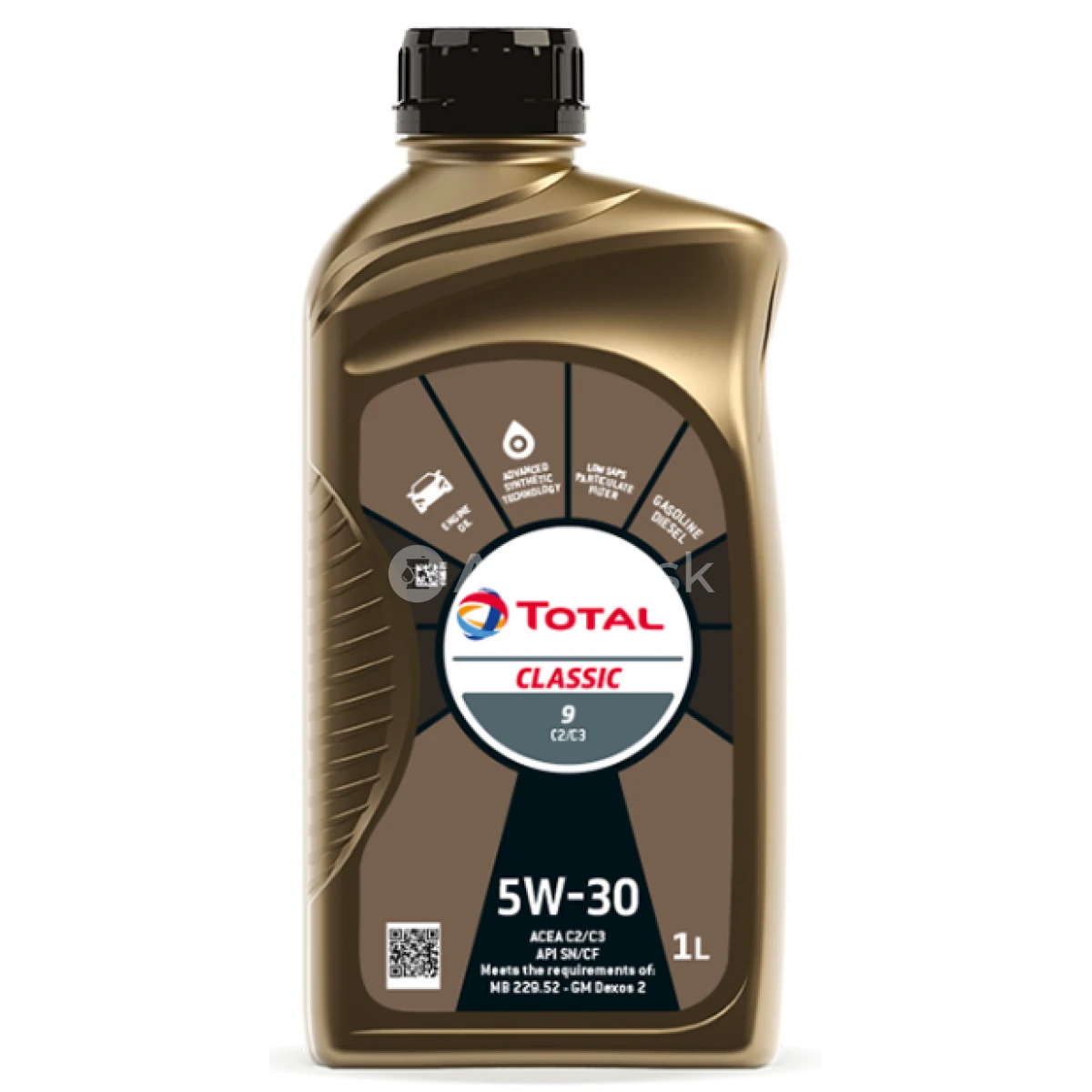 Total Classic 9 C2-C3 5W-30 je viacstupňový Low SAPS motorový olej na báze syntetickej technológie pre benzínové a naftové motory, ktorý obsahuje